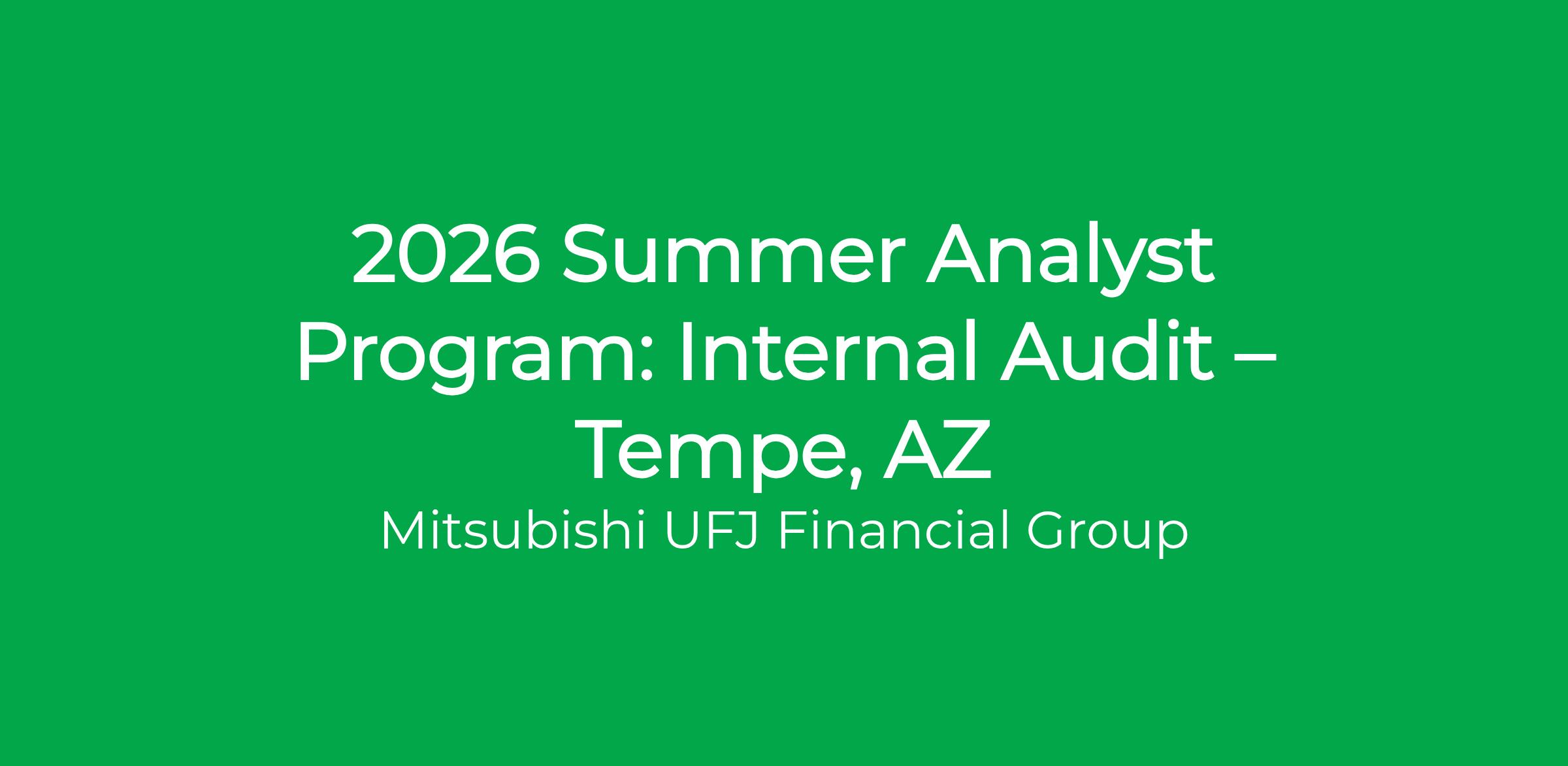 The selected colleague will work at an MUFG office or client sites four days per week and work remotely one day. A member of our recruitment team will provide more details.2026 Internal Audit Summer Analyst Program