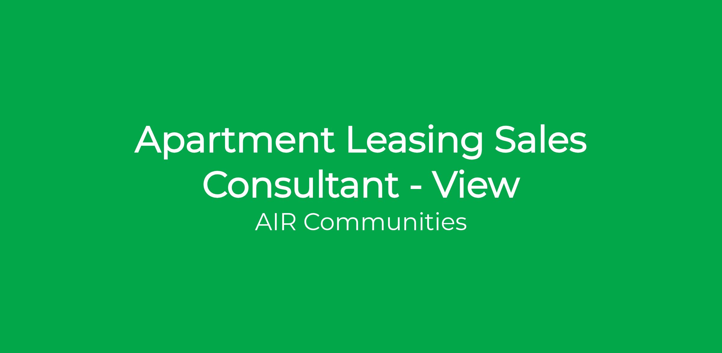 - Follow AIR's sales process including prompt follow-up with active prospects, scheduling and conducting tours to sell the value of your unique community and to help prospects find their new home at AIR.