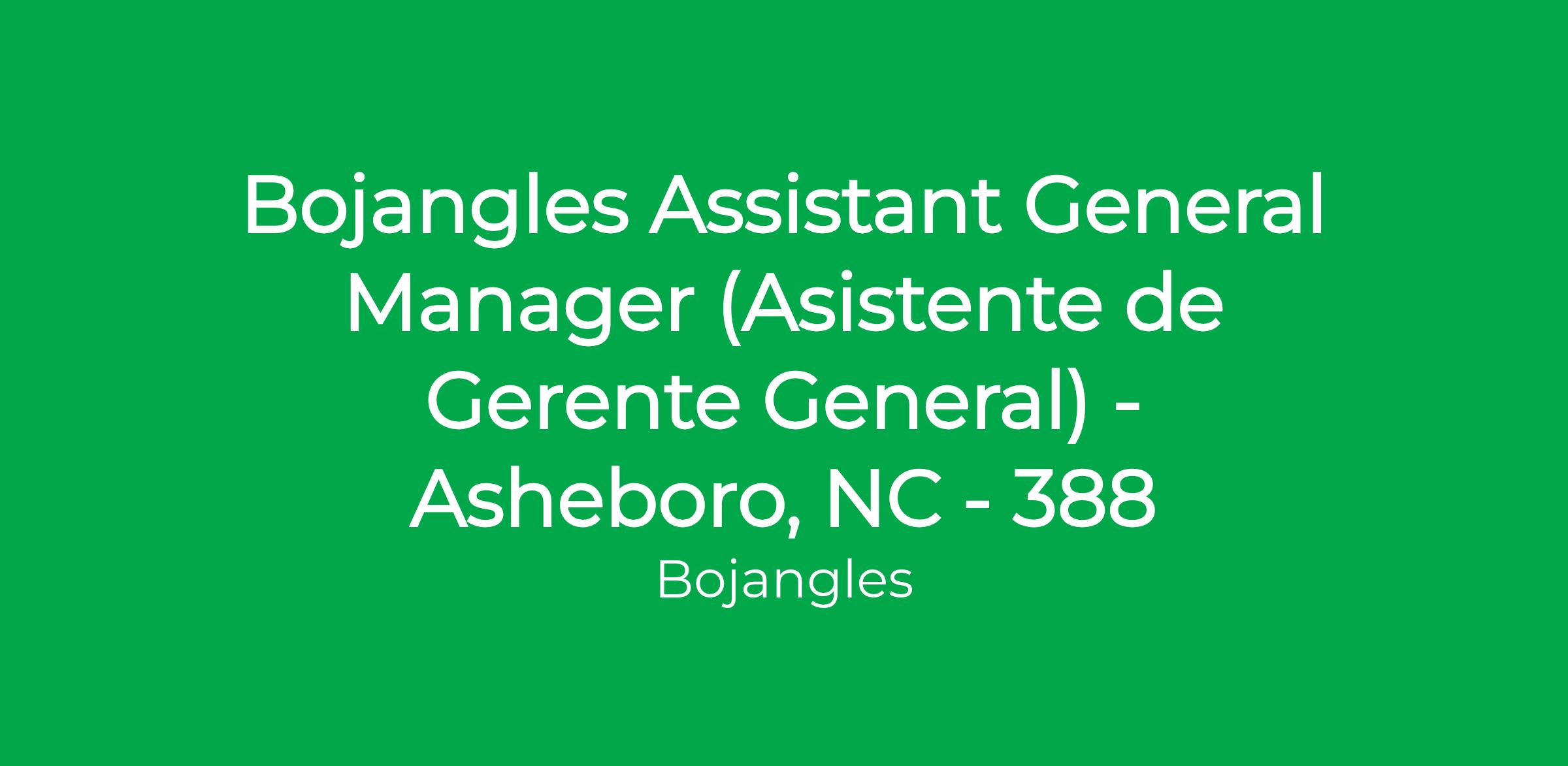 Se anima a las personas con antecedentes penales a presentar su solicitud. Bojangles Restaurants Inc. es un empleador de Oportunidad Justa, Igualdad de Oportunidades de Empleo, Acción Afirmativa.
