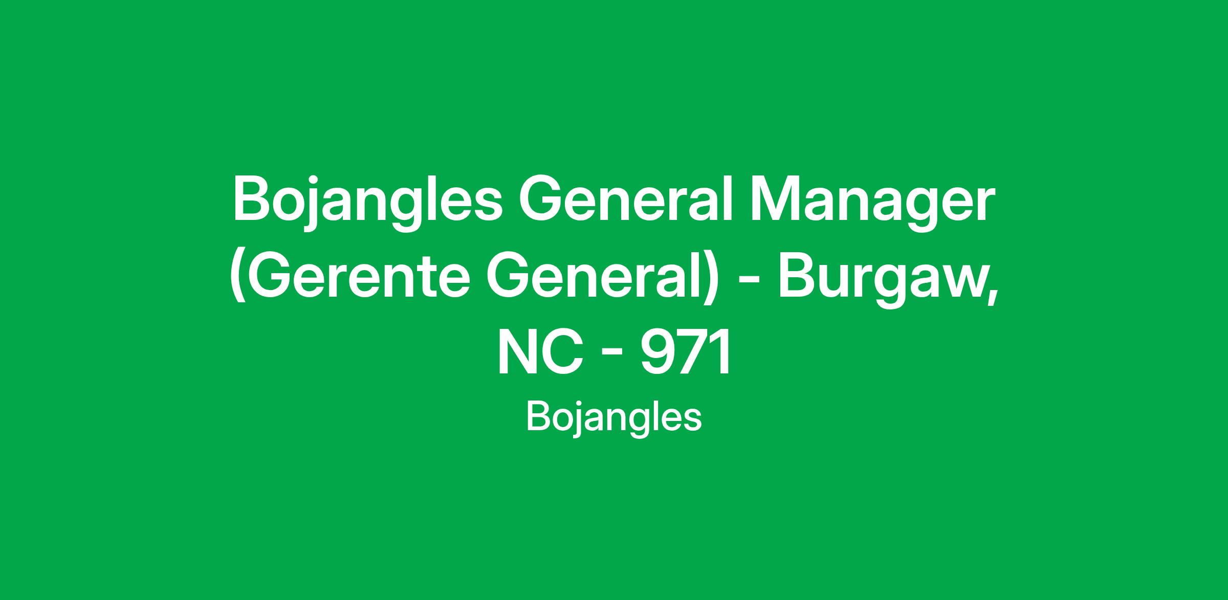 Bojangles General Manager (Gerente General) - Burgaw, NC - 971
