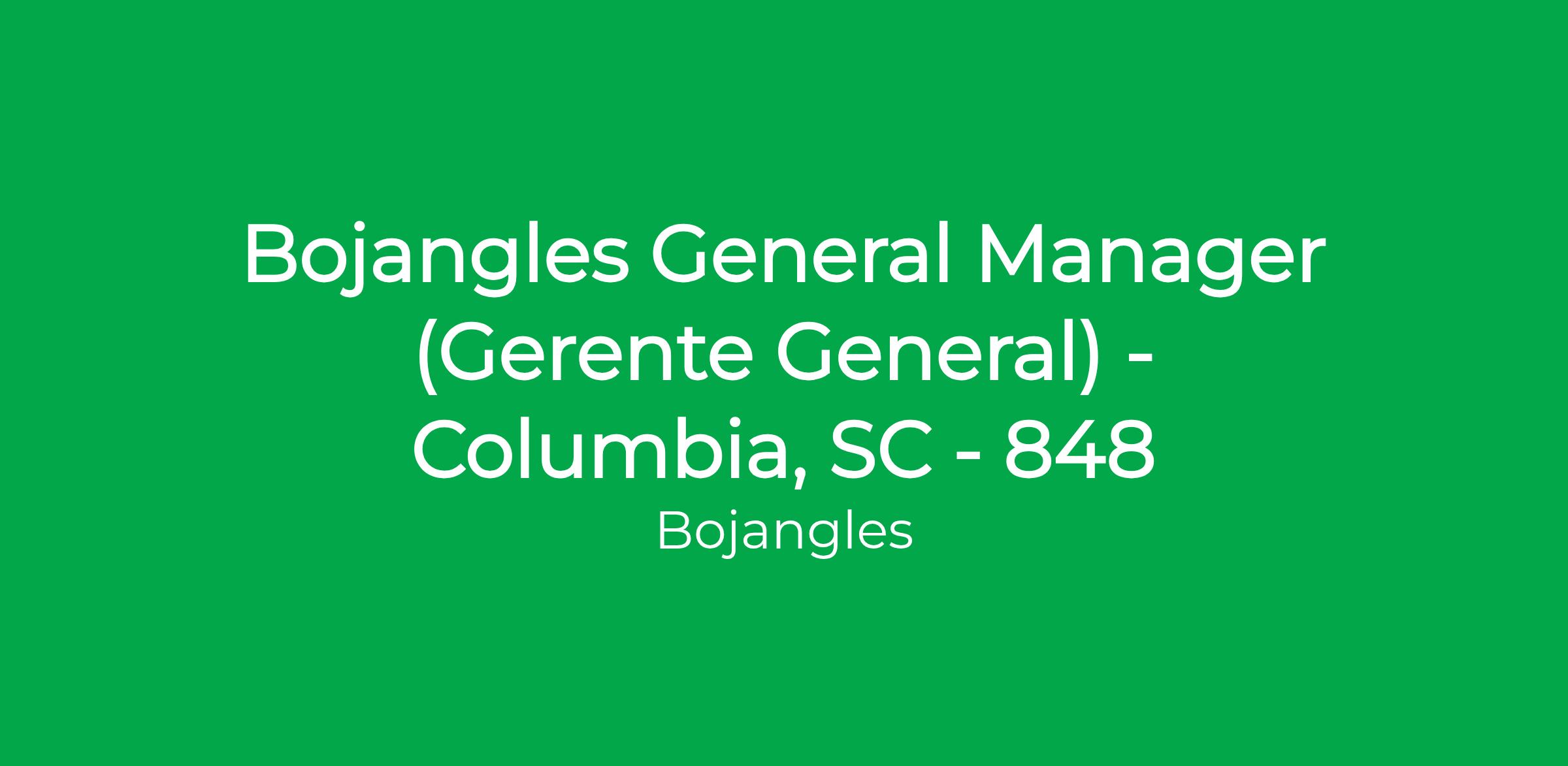 Bojangles General Manager (Gerente General) - Columbia, SC - 848