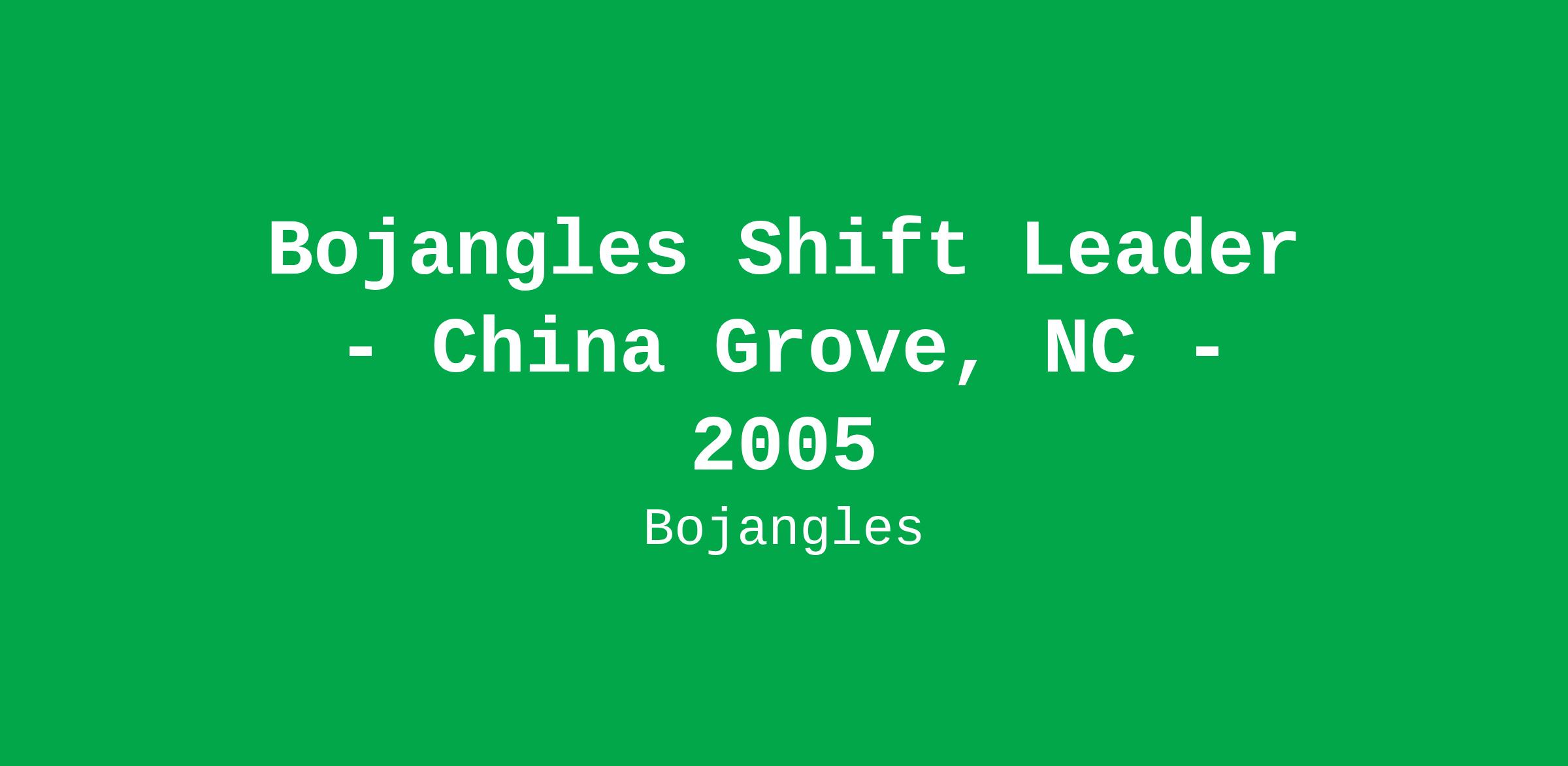 Bojangles Restaurants Inc. es un empleador que ofrece igualdad de oportunidades, acción afirmativa y una oportunidad justa.