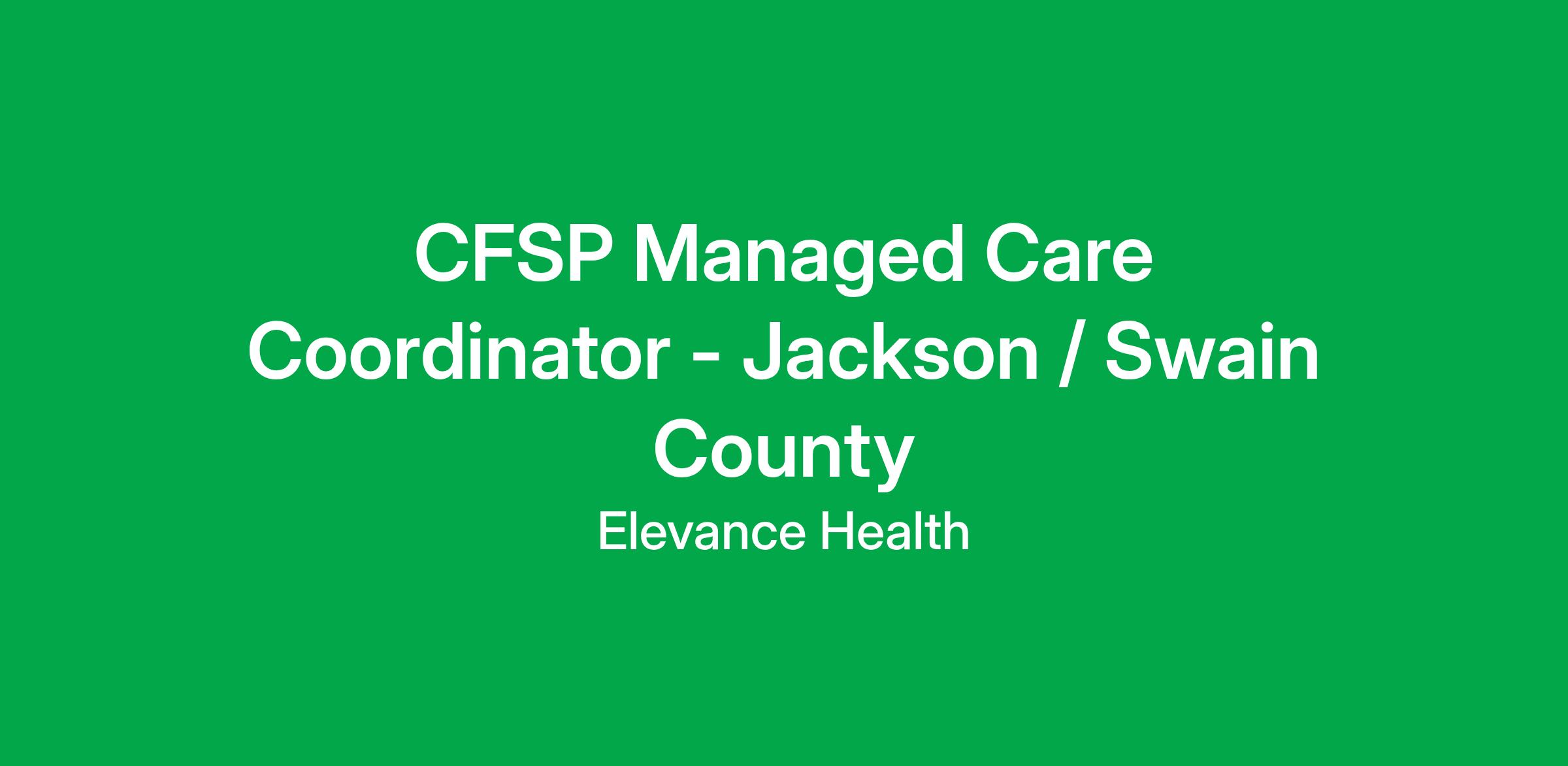 CFSP Managed Care Coordinator - Jackson / Swain CountyJob Description: