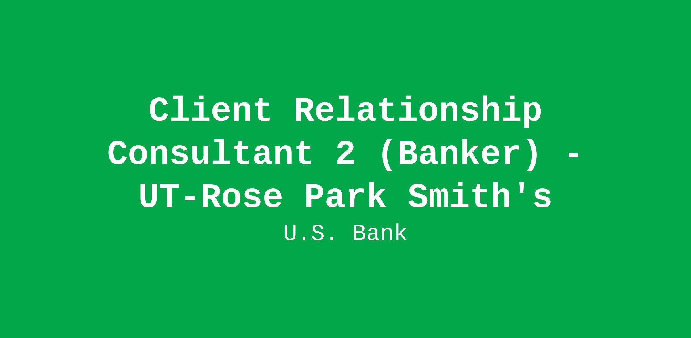 Client Relationship Consultant 2 (Banker) - UT-Rose Park Smith's