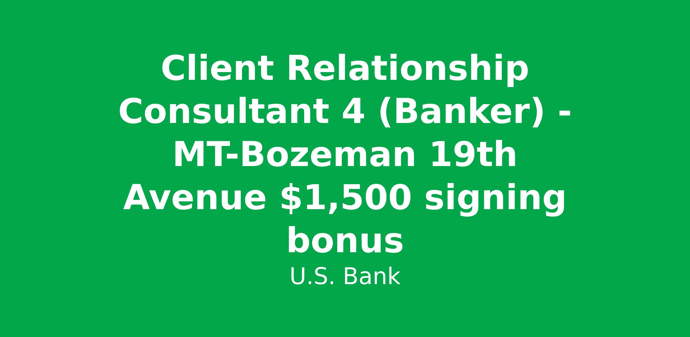 Client Relationship Consultant 4 (Banker) - MT-Bozeman 19th Avenue $1,500 signing bonus