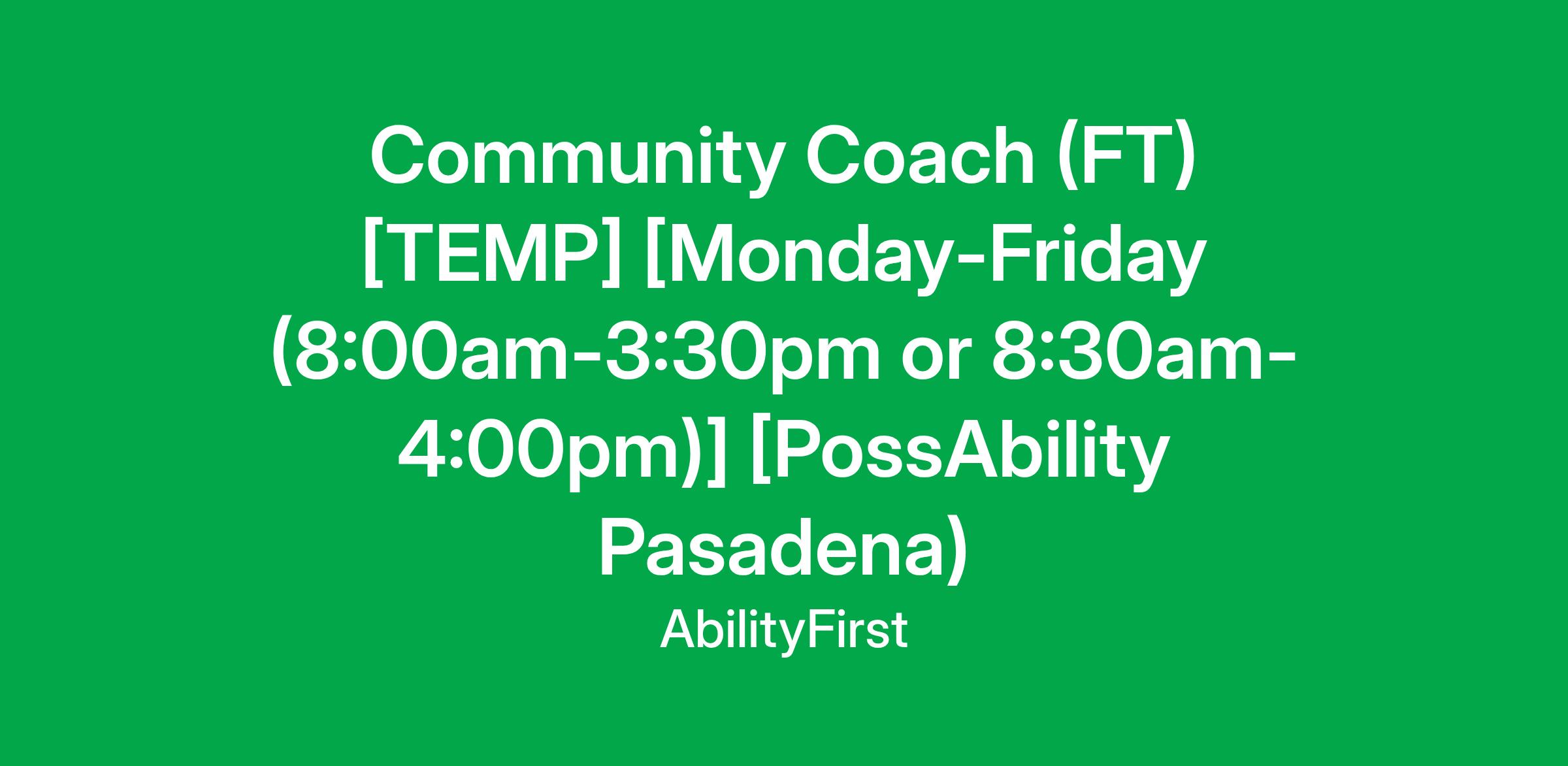 JOB TITLE: Community Coach [Full-Time] [Temporary Position]