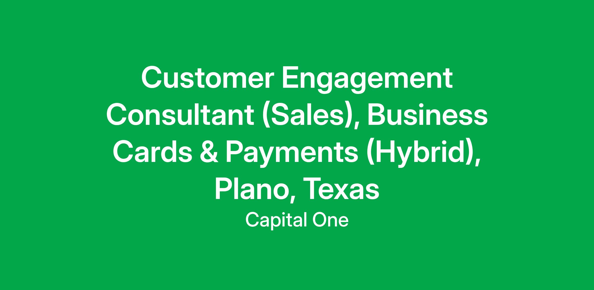 Are you a self-starter, a go-getter, and a deal maker? Are you disciplined and autonomous? Within Capital One’s Business Cards & Payments group, you will find a culture that expects and rewards excellence. We believe in unlocking the power of people and equipping them to do great things! We are looking for like-minded people who can share our passion for success and a high sense of urgency to deliver on customer needs.