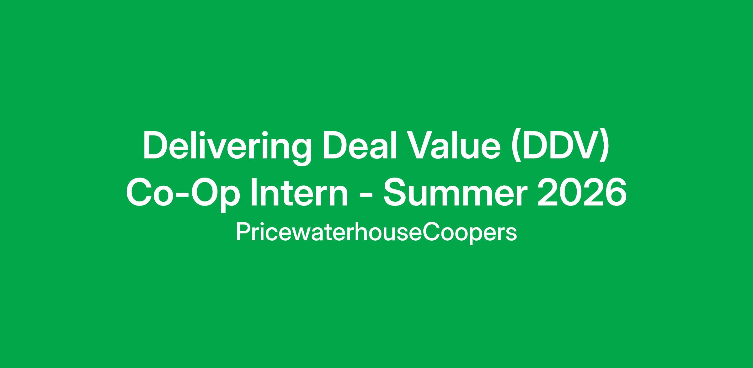 As a Delivering Deal Value (DDV) Co-Op Intern, you will engage in projects that focus on deal integration and value realization, providing support to client-facing teams. As an Intern, you will immerse yourself in learning and gaining exposure to PwC's practices, supporting teams with basic tasks, and participating in projects to contribute to the team's success. In this role, you will have the chance to observe professional work environments and conduct research, helping you to develop your personal brand.