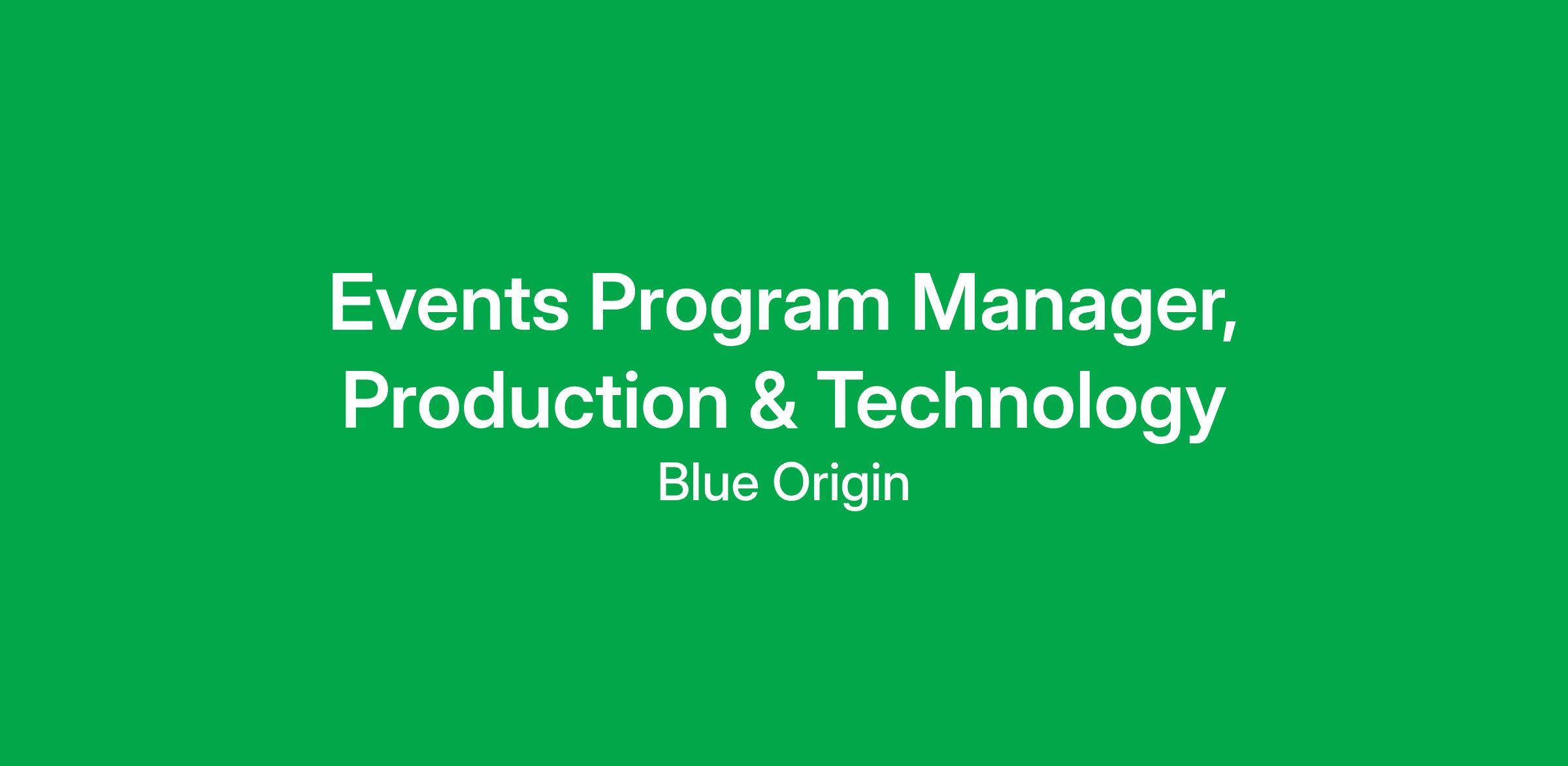 This role is part of Blue Origin corporate functions, providing centralized support across Blue Origin business unit teams, functions, and locations.As the Events Program Manager, you will be the driving force behind Blue Origin’s internal events, creating engaging and seamless experiences that connect our team to our mission. You will serve as the primary Technical Director and executive producer for our most critical productions, leading them from creative concept through flawless execution.