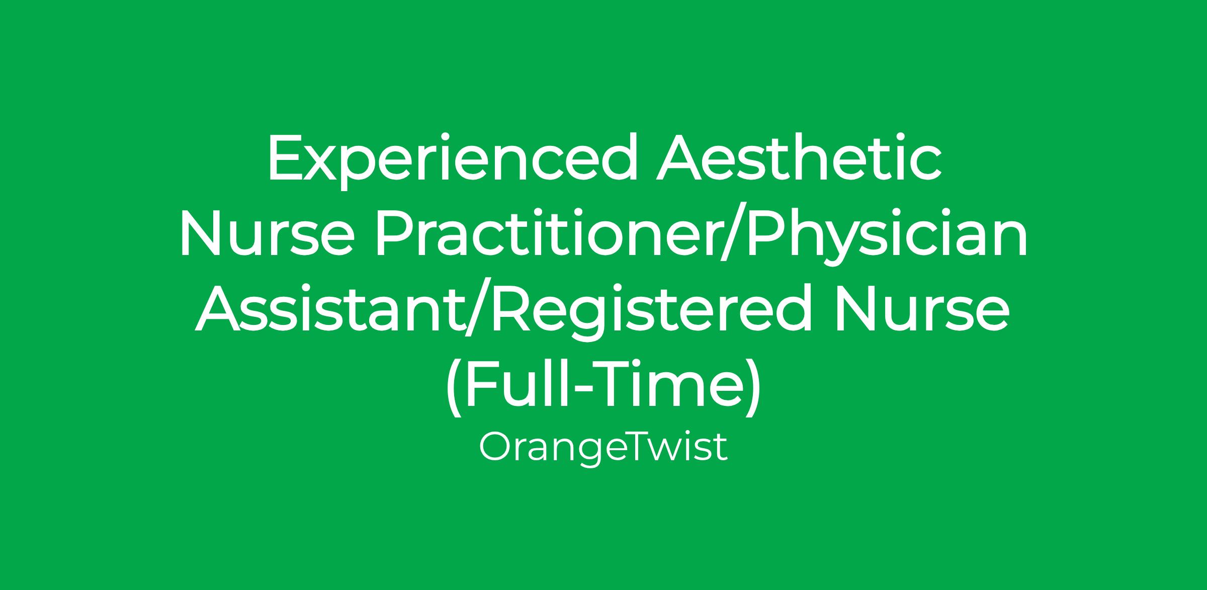 We are seeking an Aesthetic Nurse Practitioner/Physician Assistant/Registered Nurse to join our OrangeTwist Team. The Aesthetic Nurse Practitioner/Physician Assistant/Registered Nurse will provide high-quality aesthetic treatments and services to OrangeTwist clients. They will collaborate closely with the team to ensure the delivery of exceptional client care and promote a positive client experience.