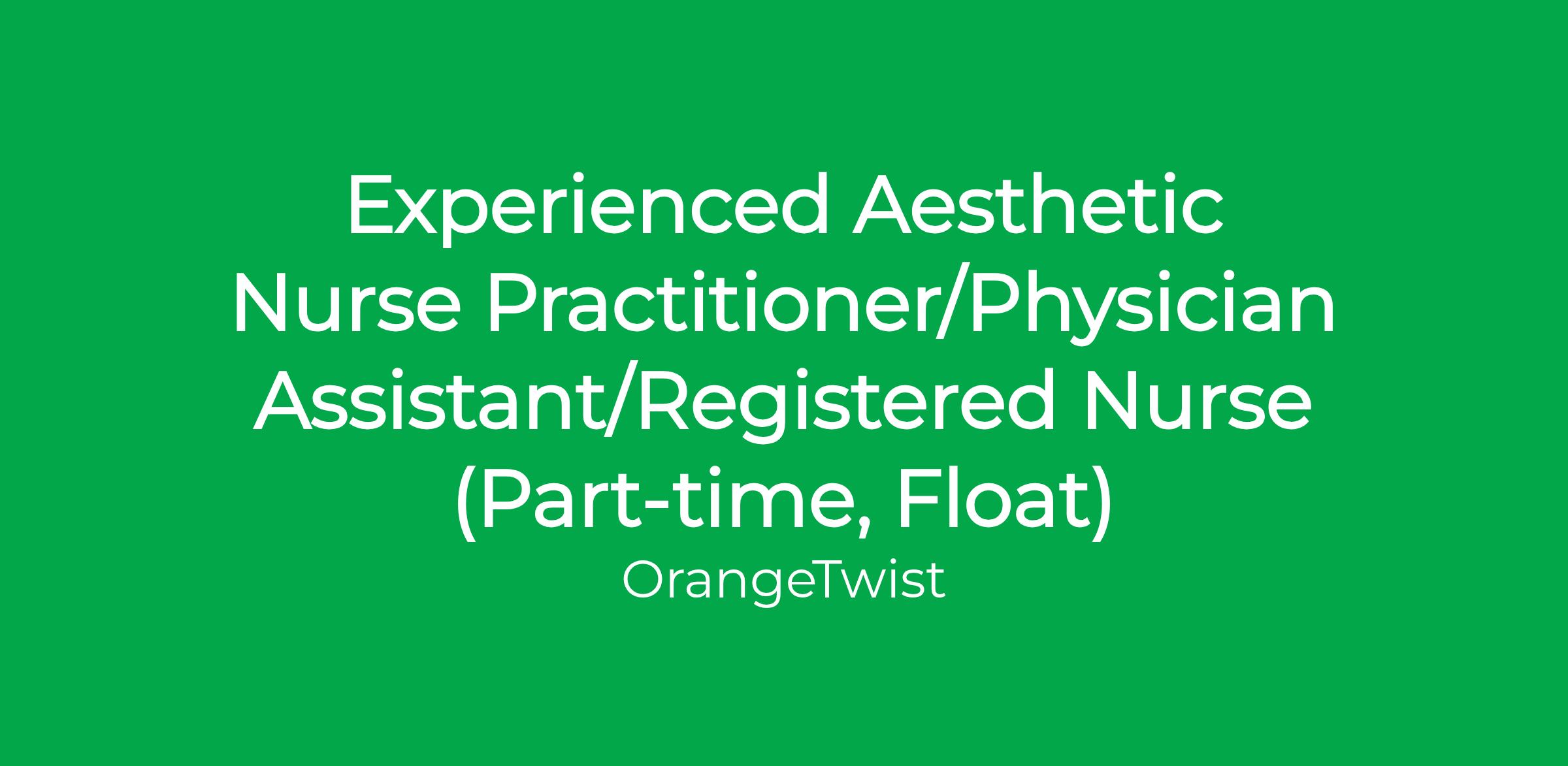 We are seeking an Aesthetic Nurse Practitioner/Physician Assistant/Registered Nurse to join our OrangeTwist Team. The Aesthetic Nurse Practitioner/Physician Assistant/Registered Nurse will provide high-quality aesthetic treatments and services to OrangeTwist clients. They will collaborate closely with the team to ensure the delivery of exceptional client care and promote a positive client experience.