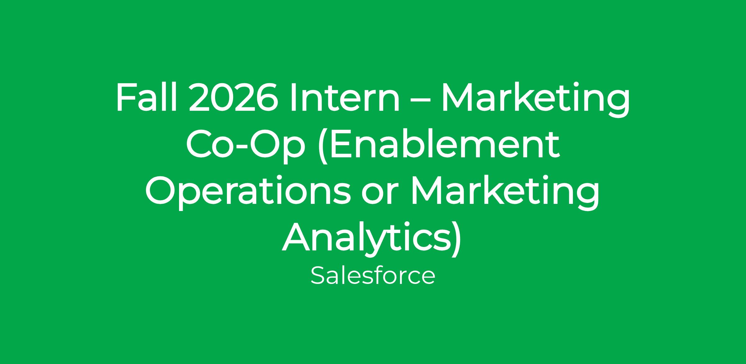 Our Salesforce Marketing team is hiring two co-op interns for the upcoming fall cycle (July 6, 2026 – December 18, 2026). We invite interested candidates to submit a single application; our team will review your skills and qualifications to determine the best alignment between the two roles during the interview process.