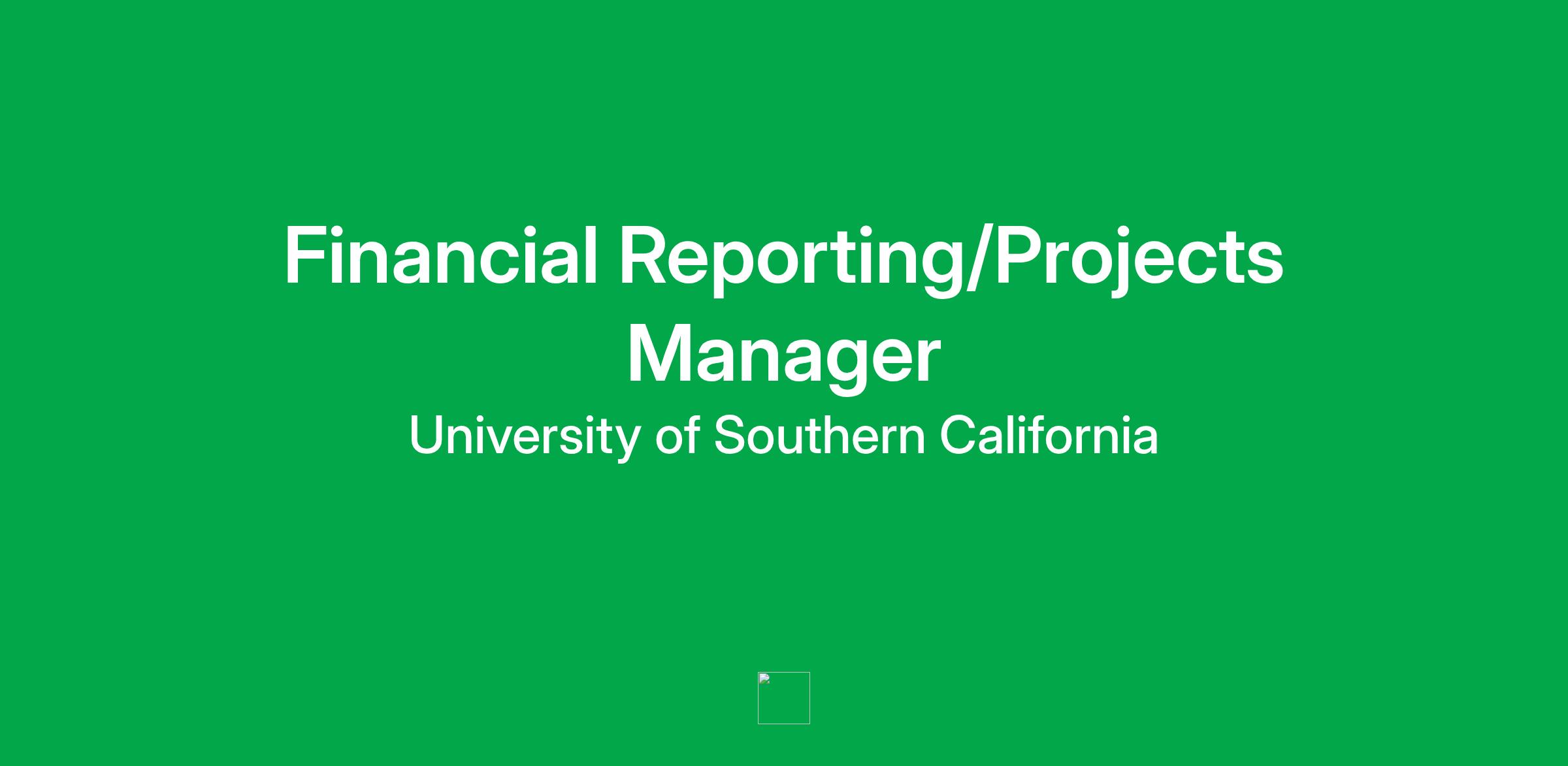 The USC Finance Division, Office of Budget and Planning is seeking a Financial Reporting/Projects Manager to join its team. The Financial Reporting/Projects Manager is responsible for managing complex financial reporting and analysis to support the Office of Budget and Planning, specifically as it relates to key performance indicators and executive dashboards for the university. The position leads the planning and development of strategic, multifaceted projects and has the responsibility for financial and business research, project management, and planning and scheduling.