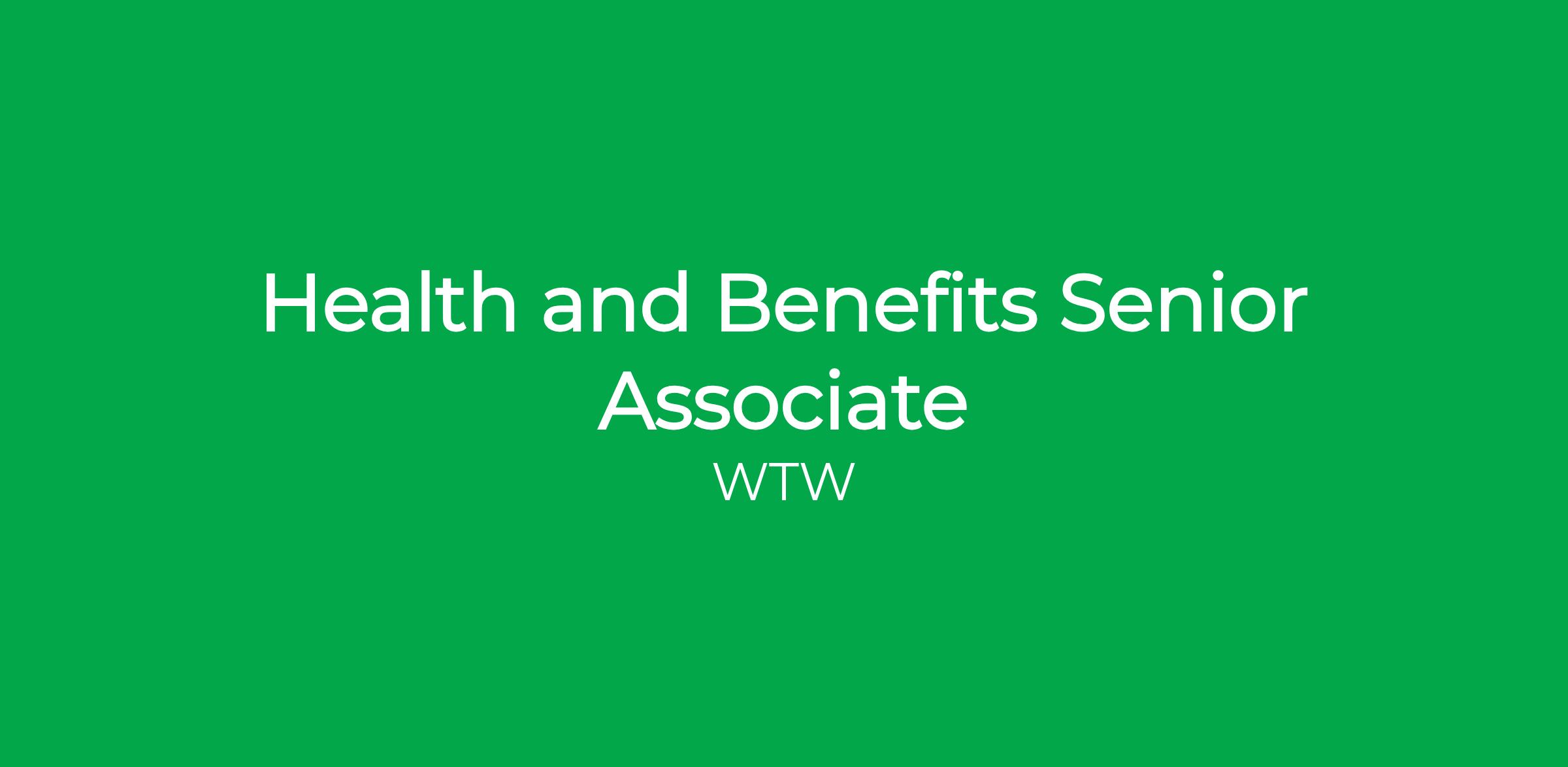 DescriptionAs a Health and Benefits Senior Associate you will contribute to a wide variety of complex projects involving the design, financing and ongoing management of the full spectrum of health and benefit programs. You will serve as the lead project manager on select projects, interface with vendors and key clients internally and externally, create client deliverables, and ensure quality standards are met. You will have the opportunity to significantly grow your health and benefits business acumen as well as your financial, project management and client relationship skills by working on cutting edge projects alongside leaders in the industry.