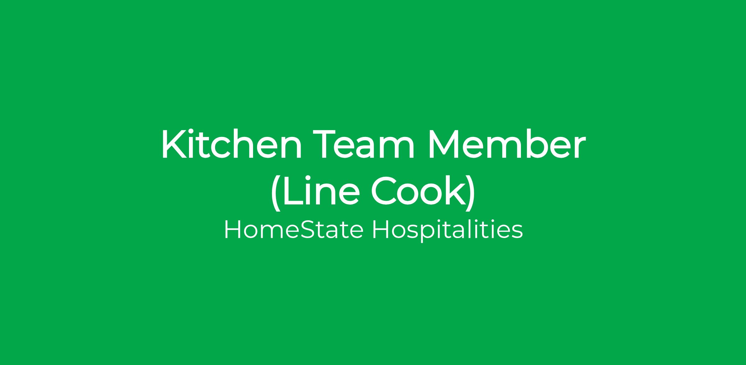 HomeState is currently hiring for the position of: Kitchen Team Member (Line Cook)