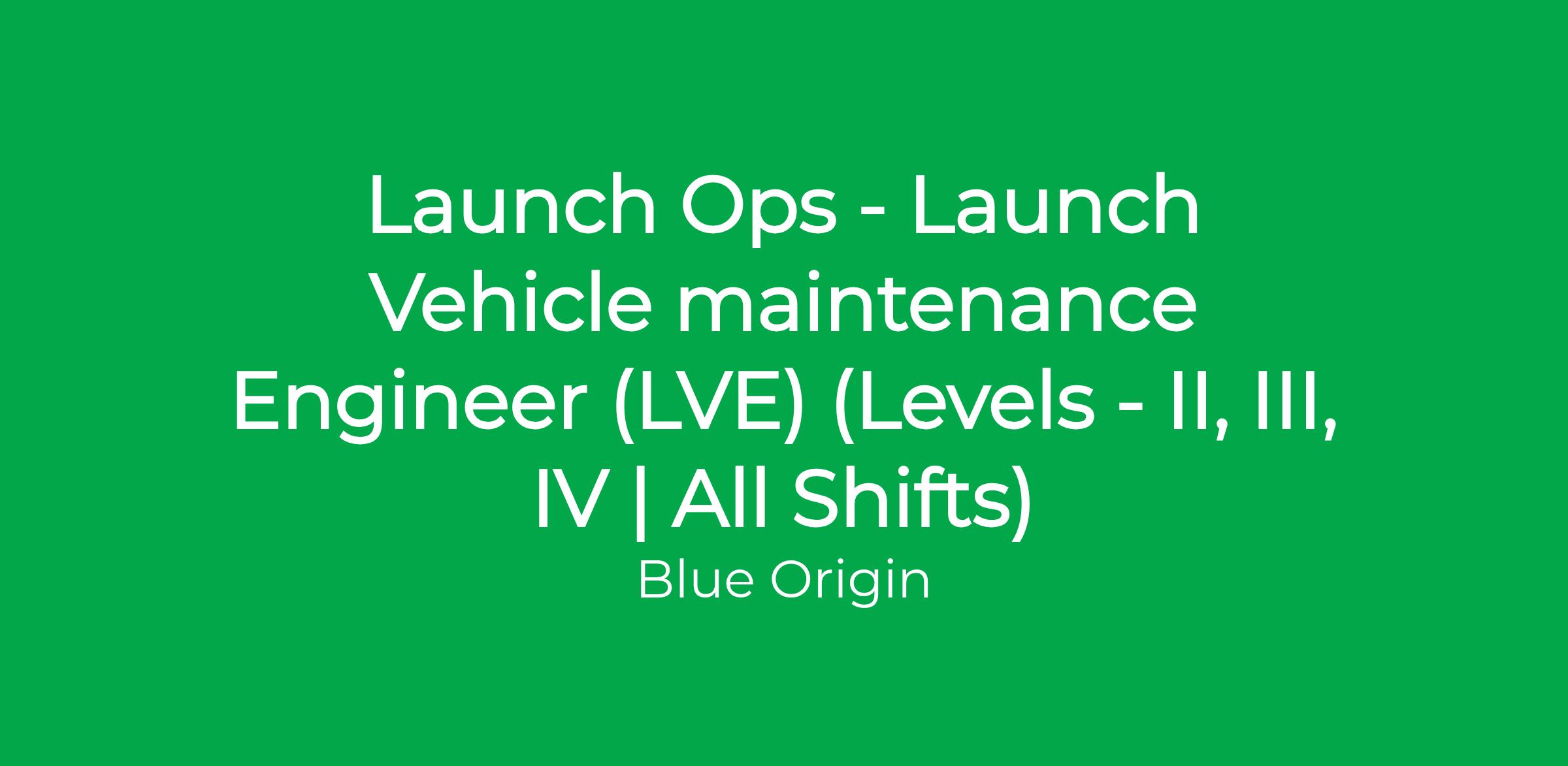 This role is part of Blue Origin Operations, which is comprised of Integrated Supply Chain, Test Operations, Safety, Quality, and Mission Assurance. This includes Manufacturing and Supply Chain support across all Blue Origin facilities.Blue Origin is seeking a Launch Vehicle Engineer (LVE) to join our Engineering team. In this role, you will serve as the engineering owner for assigned hardware systems, responsible for both maintenance engineering and refurbishment activities for our operational fleet of vehicles. This position requires comprehensive engineering ownership for vehicle systems throughout their operational lifecycle.