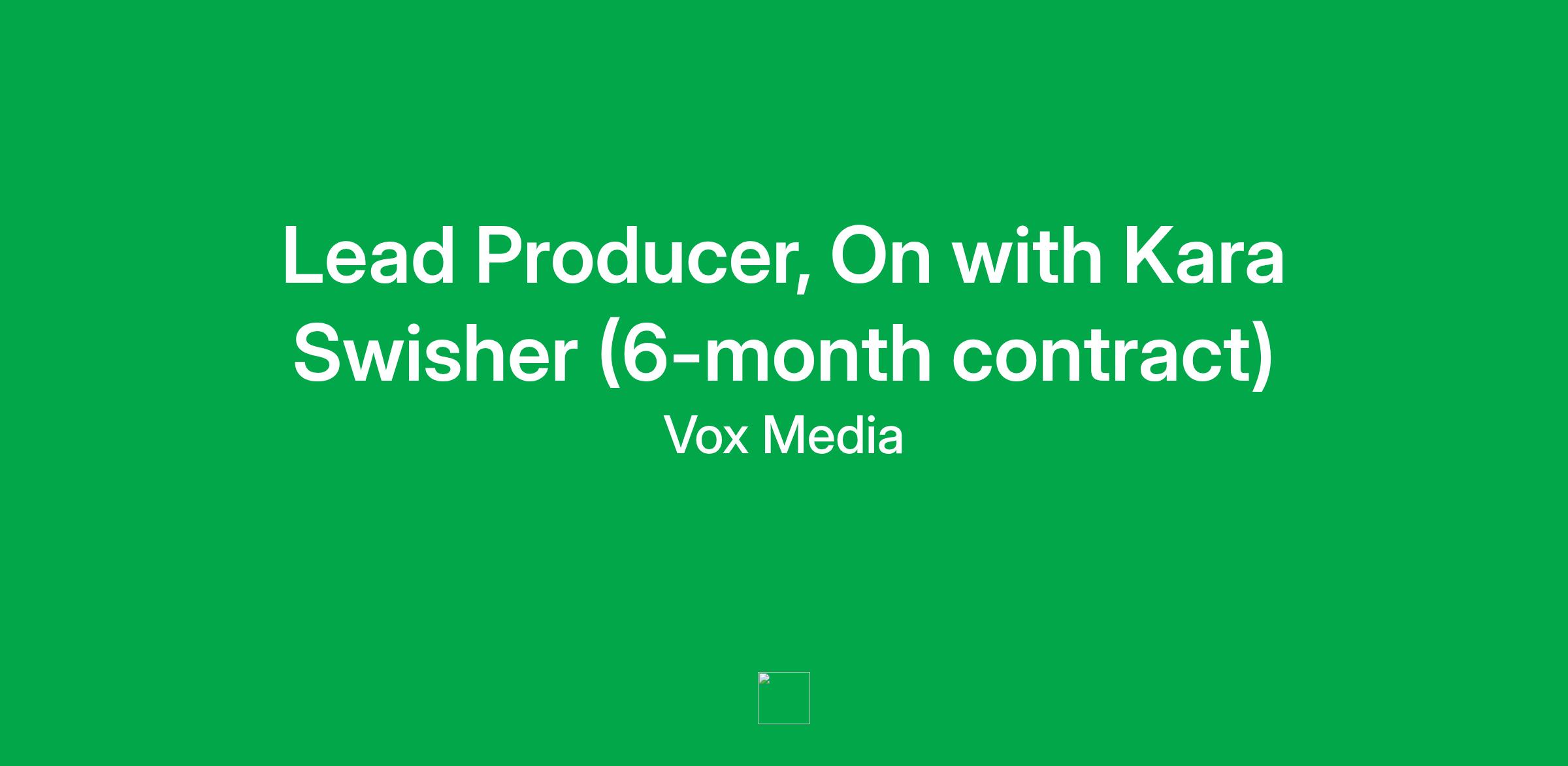 The Vox Media Podcast Network is hiring a Lead Producer for its award‑winning show On with Kara Swisher. The podcast reaches a large, influential audience and regularly welcomes headline‑makers across politics (Kamala Harris, Bernie Sanders, Pete Buttegieg), tech (Sam Altman, Geoffrey Hinton, Bill Gates), and culture (Margaret Atwood, Laverne Cox, Ronny Chieng). This is a six-month contract position with the potential to convert to a full-time, permanent role.