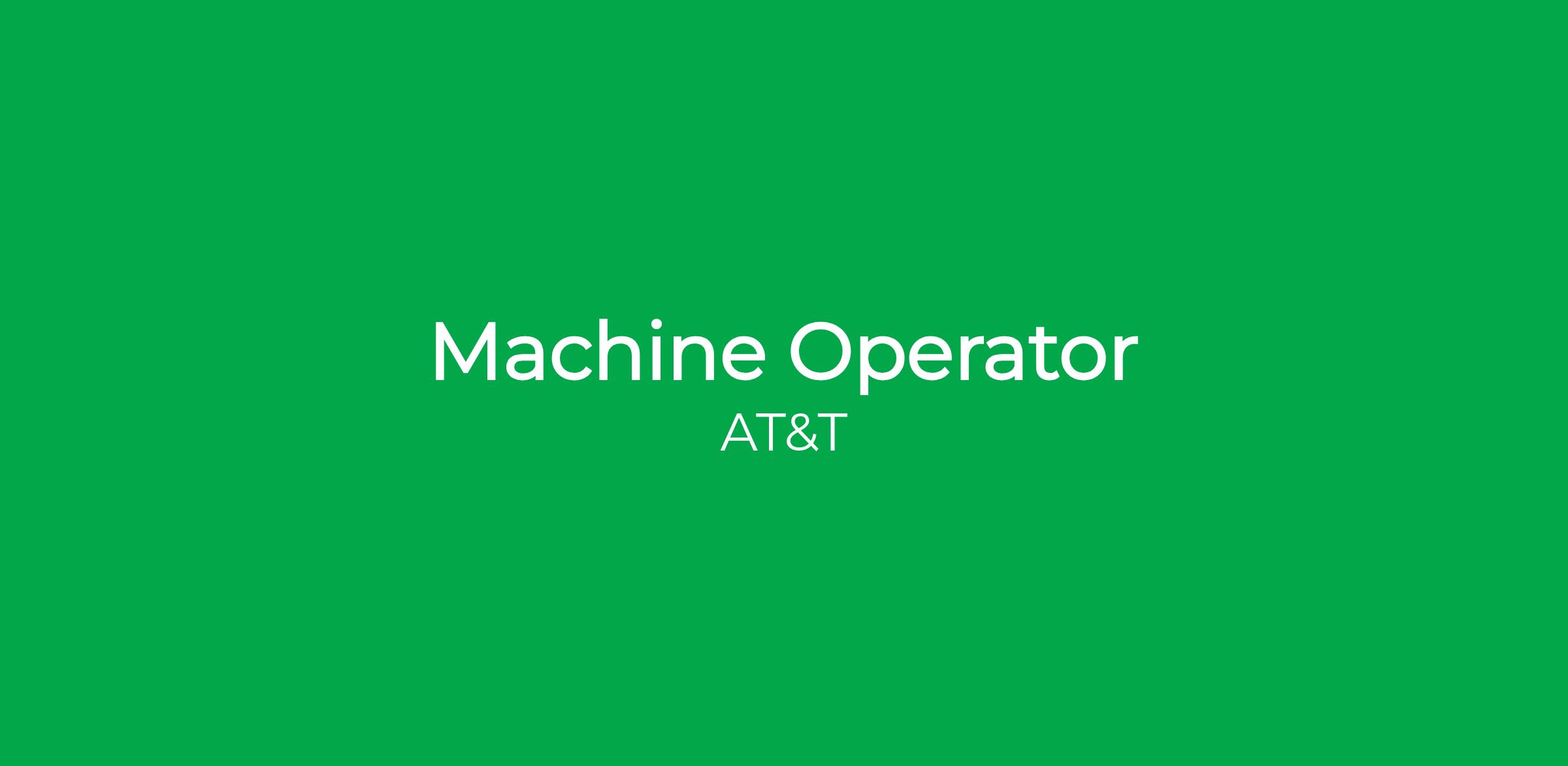 Our Machine Operators earn between $442 – $1,094 weekly. With our amazing salary opportunities, our average starting salary begins at $51,064.00 per year. Not to mention all the other amazing rewards that working at AT&T offers. From health insurance to tuition reimbursement and paid time off to discounts on products and services just to name a few. There is a lot to be excited about around here. Individual starting salary within this range may depend on geography, experience, expertise, and education/training.