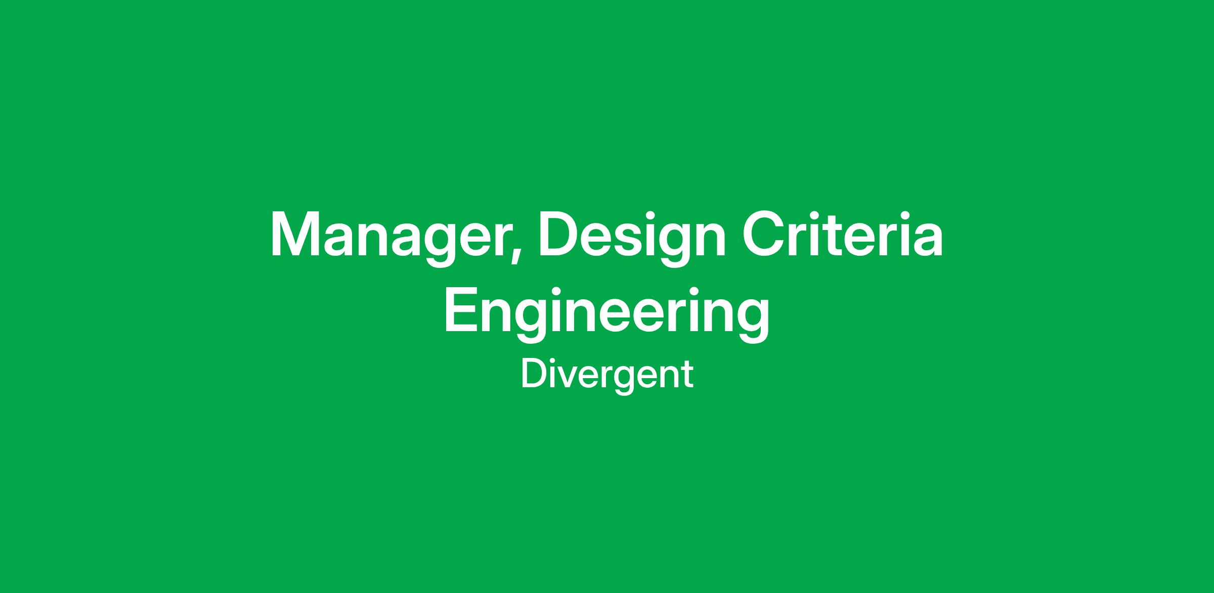 As Manager of Design Criteria Engineering, you will be responsible for defining, structuring, and managing the interface between Divergent’s customer programs (Applications Team) and its core technology development organization (Platform Technology Team). This role ensures that system-level requirements from active vehicle and defense programs are formally decomposed into clear, actionable platform requirements and capabilities across software, materials, automation, and process technology—enabling Divergent to scale execution while maintaining alignment between programs and platform evolution.