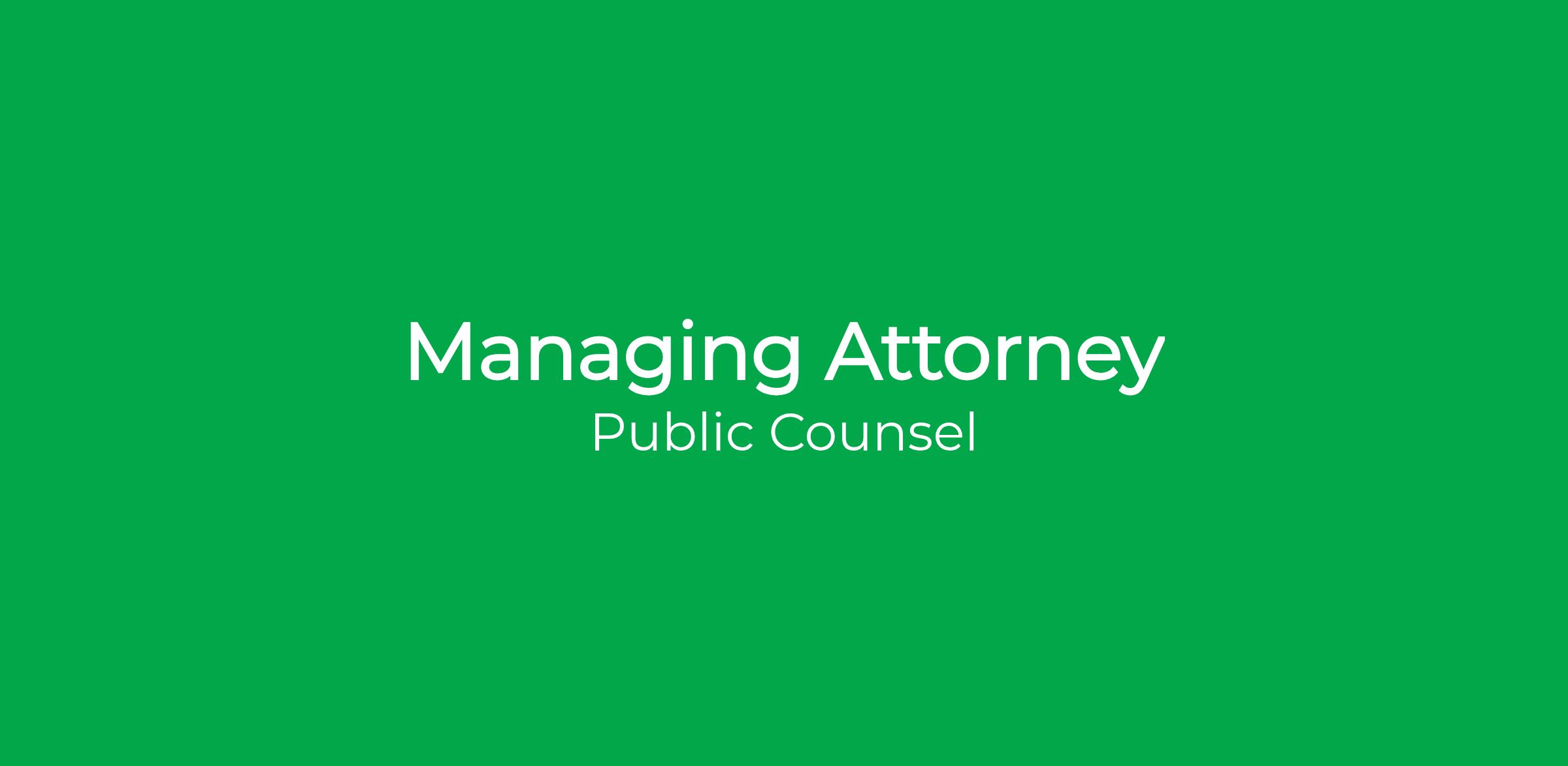 Reporting to the Director of Litigation, the Managing Attorney provides leadership and management for Public Counsel’s impact litigation team. In partnership with the Director of Litigation, the Managing Attorney helps oversee OUL’s litigation docket and ensures the effective staffing and execution of high-impact cases arising from Public Counsel’s direct services work and community-identified needs. The Managing Attorney supervises, mentors, and supports OUL attorneys, fellows, and interns, fostering a collaborative, growth-oriented team culture and ensuring high-quality advocacy. The role includes responsibility for recruiting, hiring, onboarding, training, supervising, and performance management. The Managing Attorney may serve as lead counsel in select matters and works closely with Directing Attorneys and the Senior Special Counsel for Strategic Litigation to support coordinated cross-team litigation. The position involves OUL program administration, including budgeting, grant compliance, and pro bono engagement, as well as external communications and relationship-building to strengthen the reach and impact of OUL’s work.