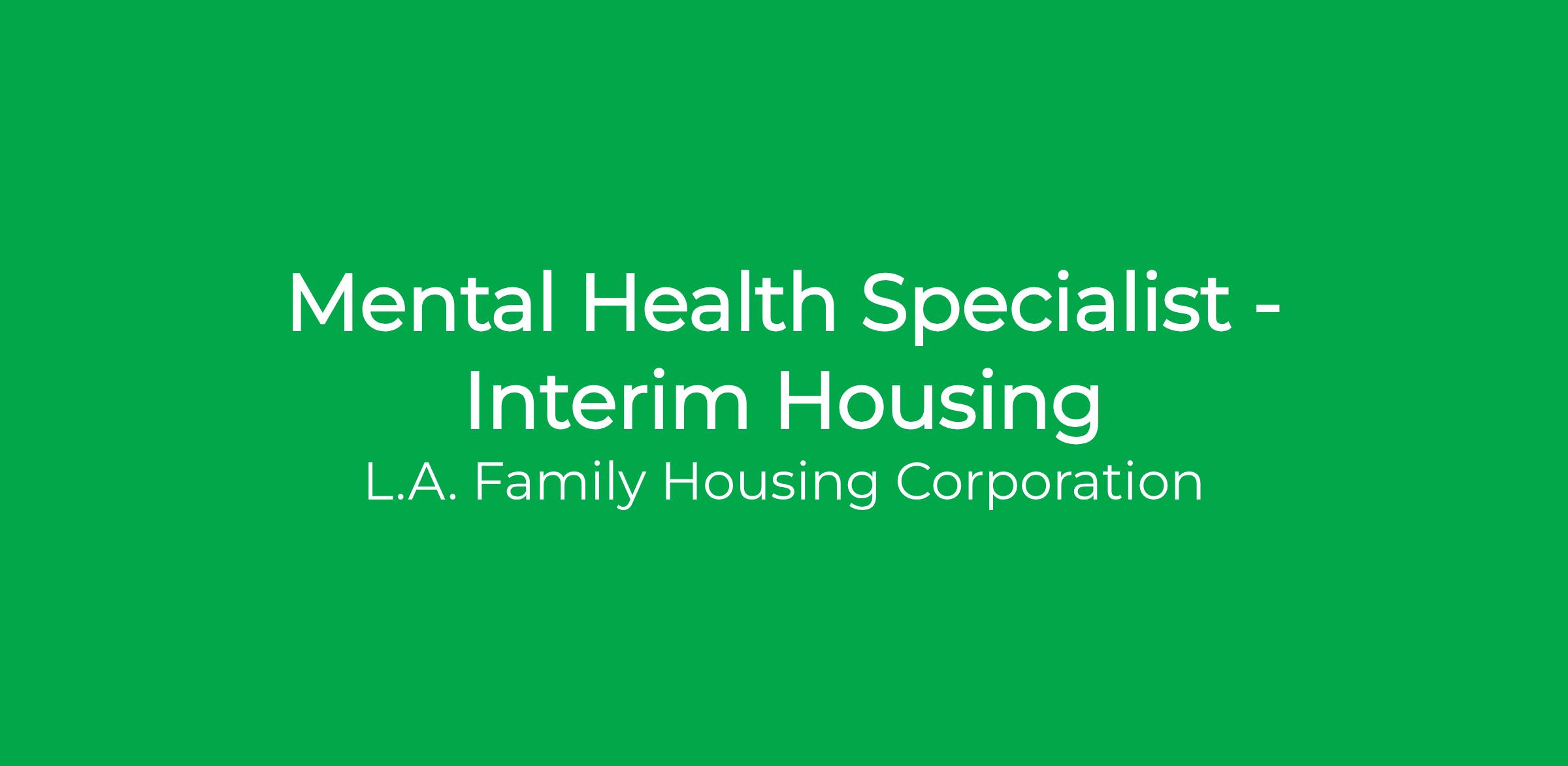 The Mental Health Specialist (MHS) is responsible for providing direct clinical intervention to participants (families and individual adults) in Interim Housing Site(s) or as part of a street-based Multidisciplinary Team (MDT). The MHS will identify participants needing mental health services through assessments, referrals, and coordination of care with partner agencies. The MHS will connect participants to community based and mental health care, provide crisis prevention and intervention, recommend level of care options, and support participants by utilizing evidenced based clinical modalities The MHS will provide in-person individual one-on-one care and lead groups. The MHS will also support their team by consulting on cases, providing recommendations for services and modeling appropriate interventions with members of their multidisciplinary team. The MHS must be able to complete thorough clinical assessment, maintain accurate clinical documentation, and collaborate closely with various community-based programs connected to the Department of Mental Health (DMH) and Department of Health Services (DHS).