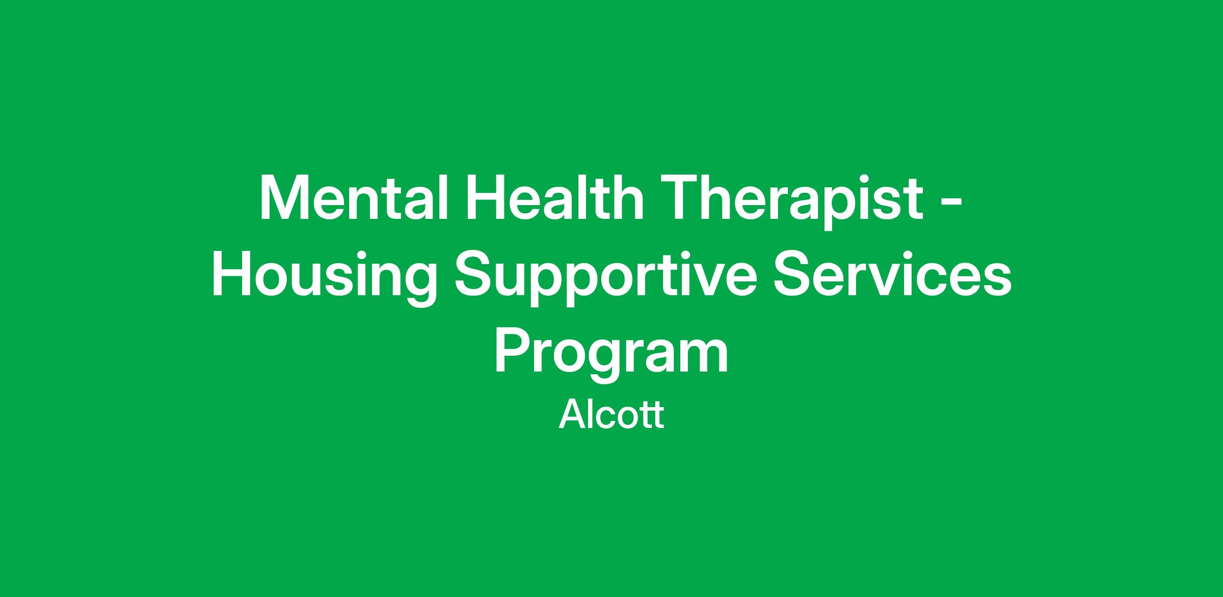 Alcott, a nonprofit agency dedicated to providing comprehensive mental health and supportive housing services to low- and no-income adults across Los Angeles County, is seeking a compassionate and motivated Mental Health Therapist – HSSP (ASW, AMFT, APCC) to join our Housing Supportive Services Program (HSSP).