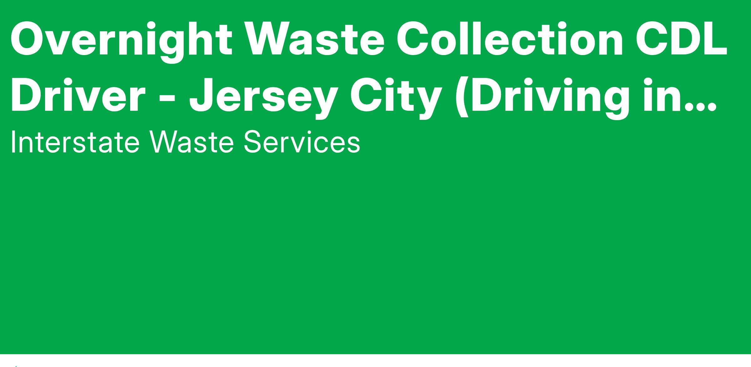We are seeking a Waste Collection CDL Driver who will be working out of our Jersey City Depot (264 Broadway, Jersey City, NJ 07306) servicing NYC Routes and reporting to the Site Manager but is also subject to supervision by Route Supervisors and Dispatchers. This is a full time, Union, non-exempt, hourly position with an overnight schedule starting anywhere between 7pm and 9pm but may vary depending on business needs. Shifts may vary from 10 to 12 hours per evening or until the route is complete. This Depot will be servicing our NYC routes.