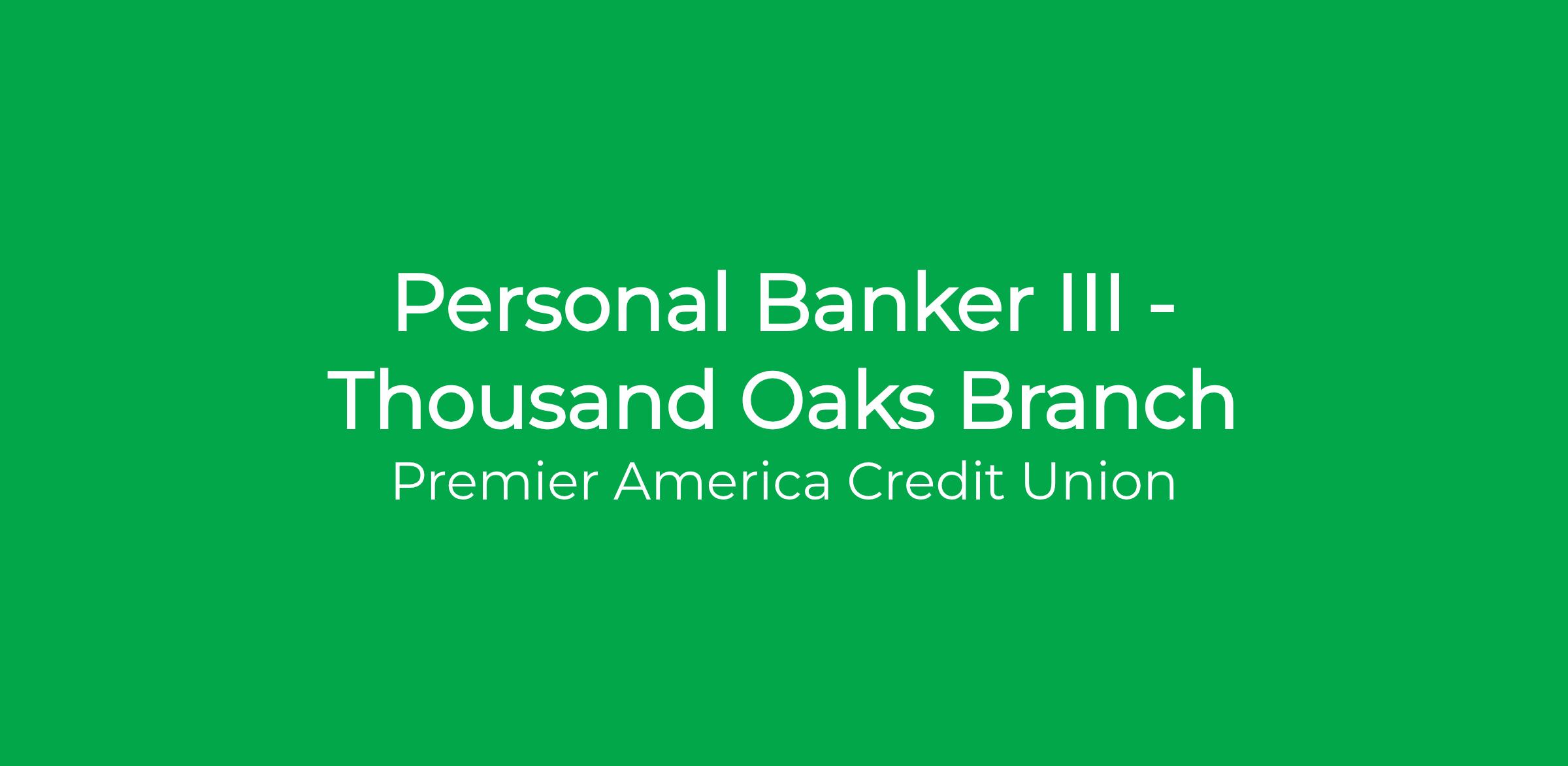 Job Title: Personal Banker III – Full-time – Thousand Oaks Branch