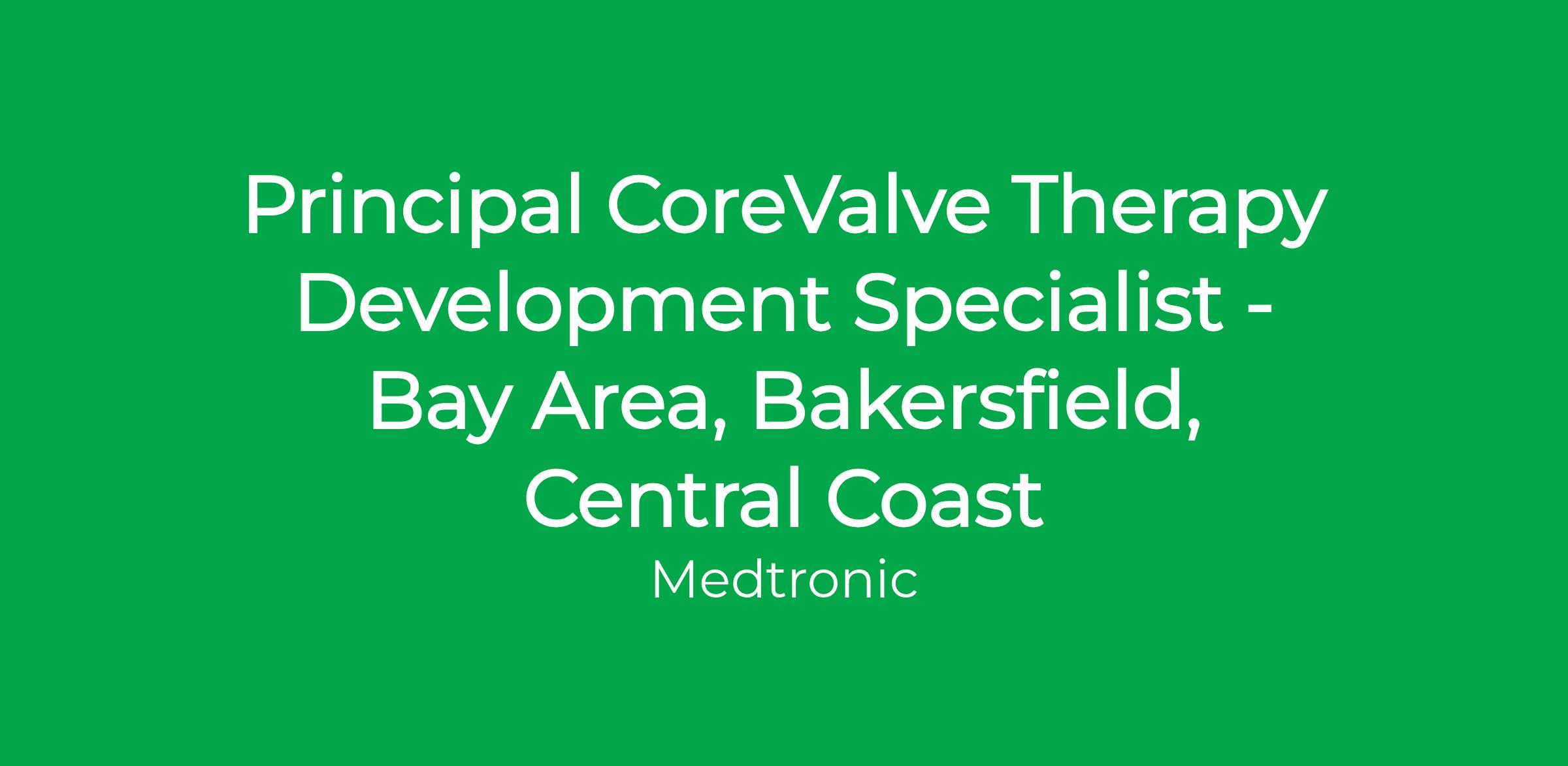 The CoreValve Principal Therapy Development Specialist (TDS) provides technical, clinical, educational and sales support to ensure safe adoption and growth of the Medtronic CoreValve System and future catheter-based therapy technologies. The CoreValve Therapy Development Specialist works closely with implanting teams and the Medtronic Catheter-Based Therapies (CBT) and CVG field organizations to drive procedural and practice success.
