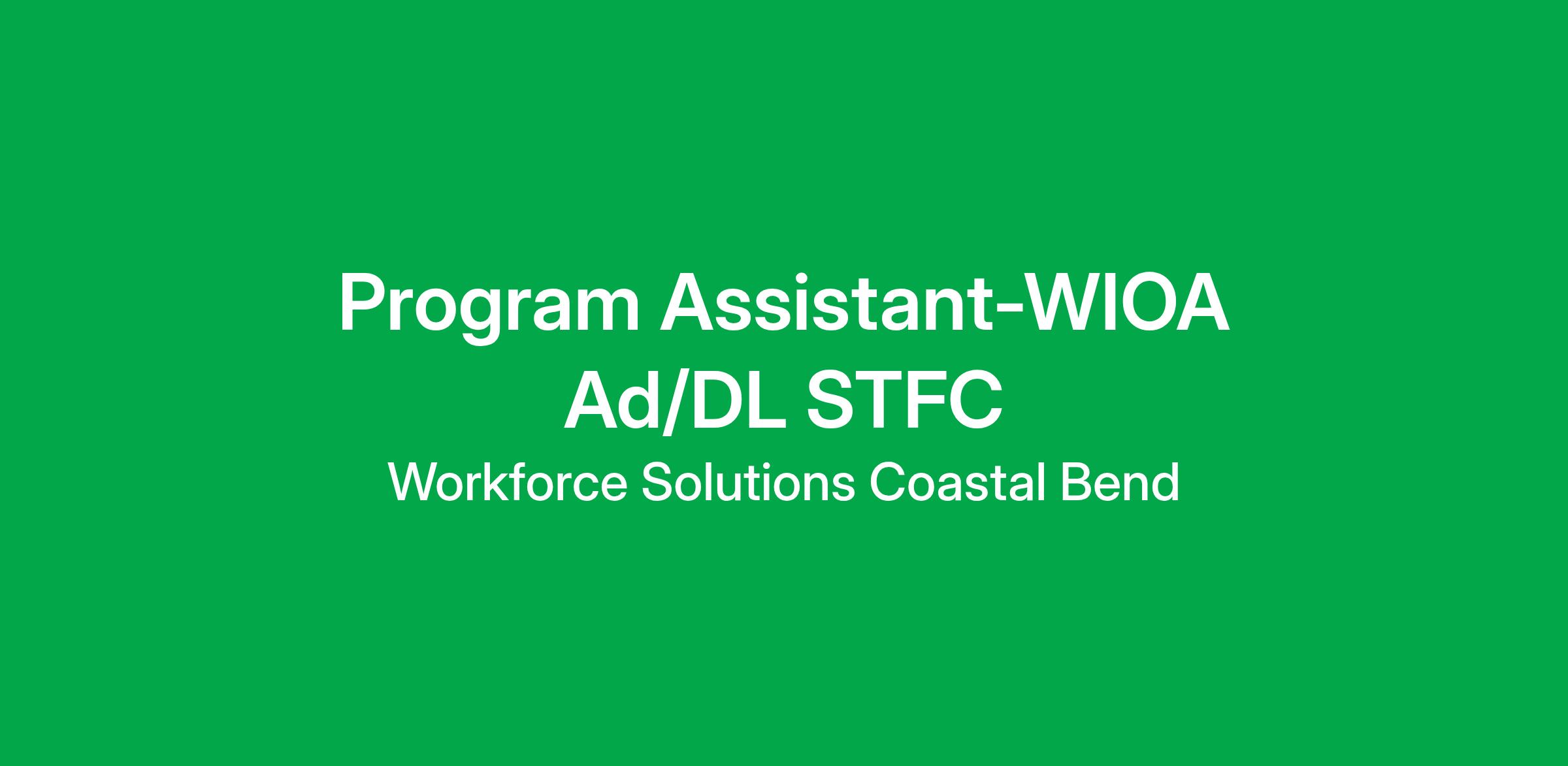 *This is a Work Experience (work-based learning) position available through Workforce Solutions Coastal Bend. All candidates will be considered after program eligibility is determined.