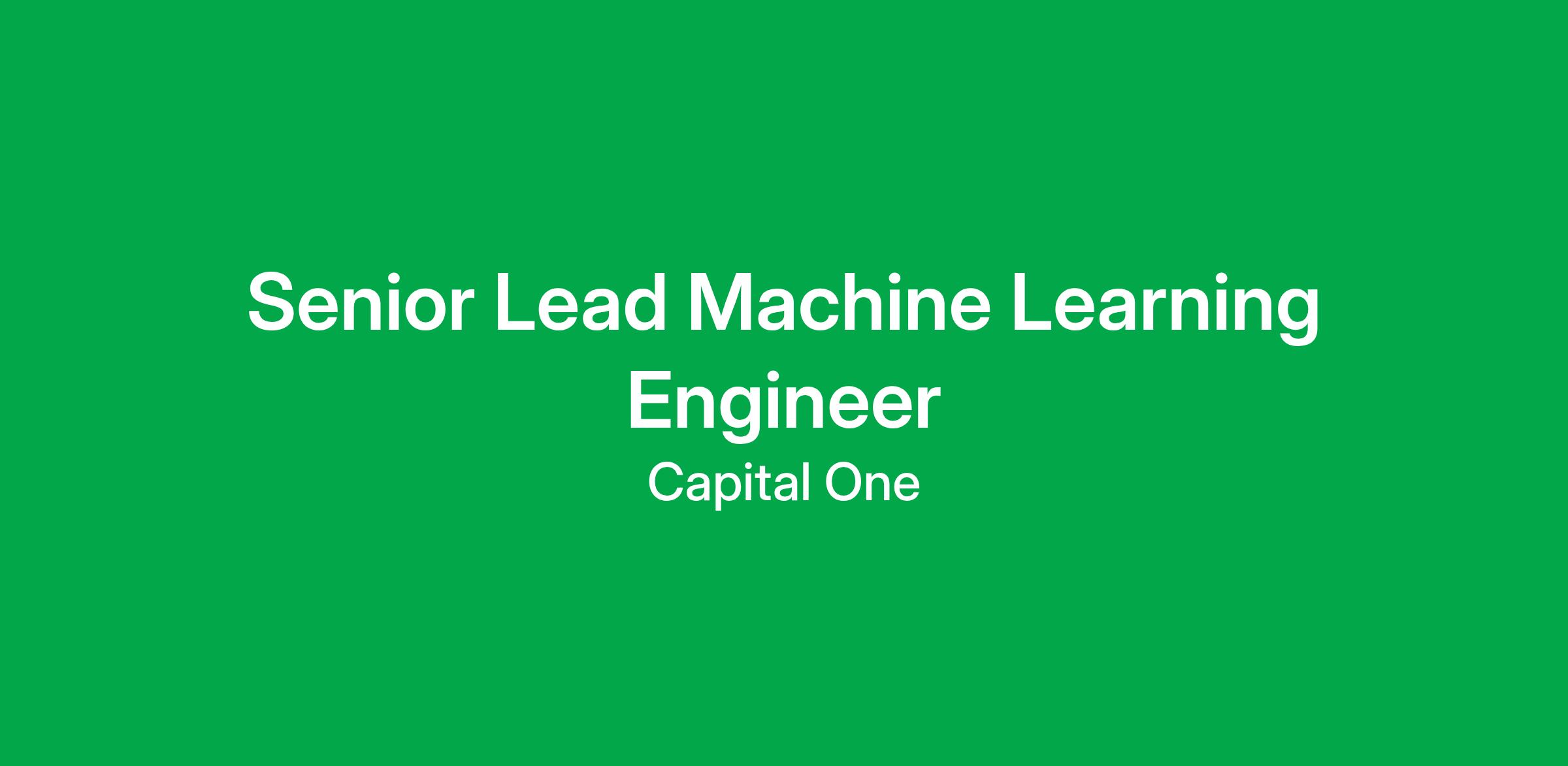 Capital One's Digital Commerce & Innovation organization is seeking a Senior Lead, Machine Learning Engineer to join its Velocity Black by Capital One team.