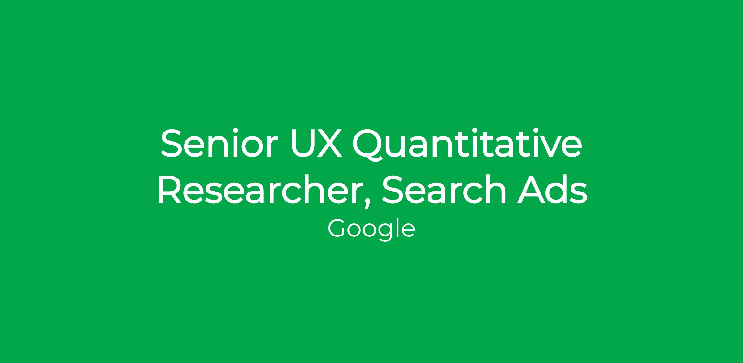 At Google, we follow a simple but vital premise: "Focus on the user and all else will follow." Quantitative User Experience Researchers make this possible.