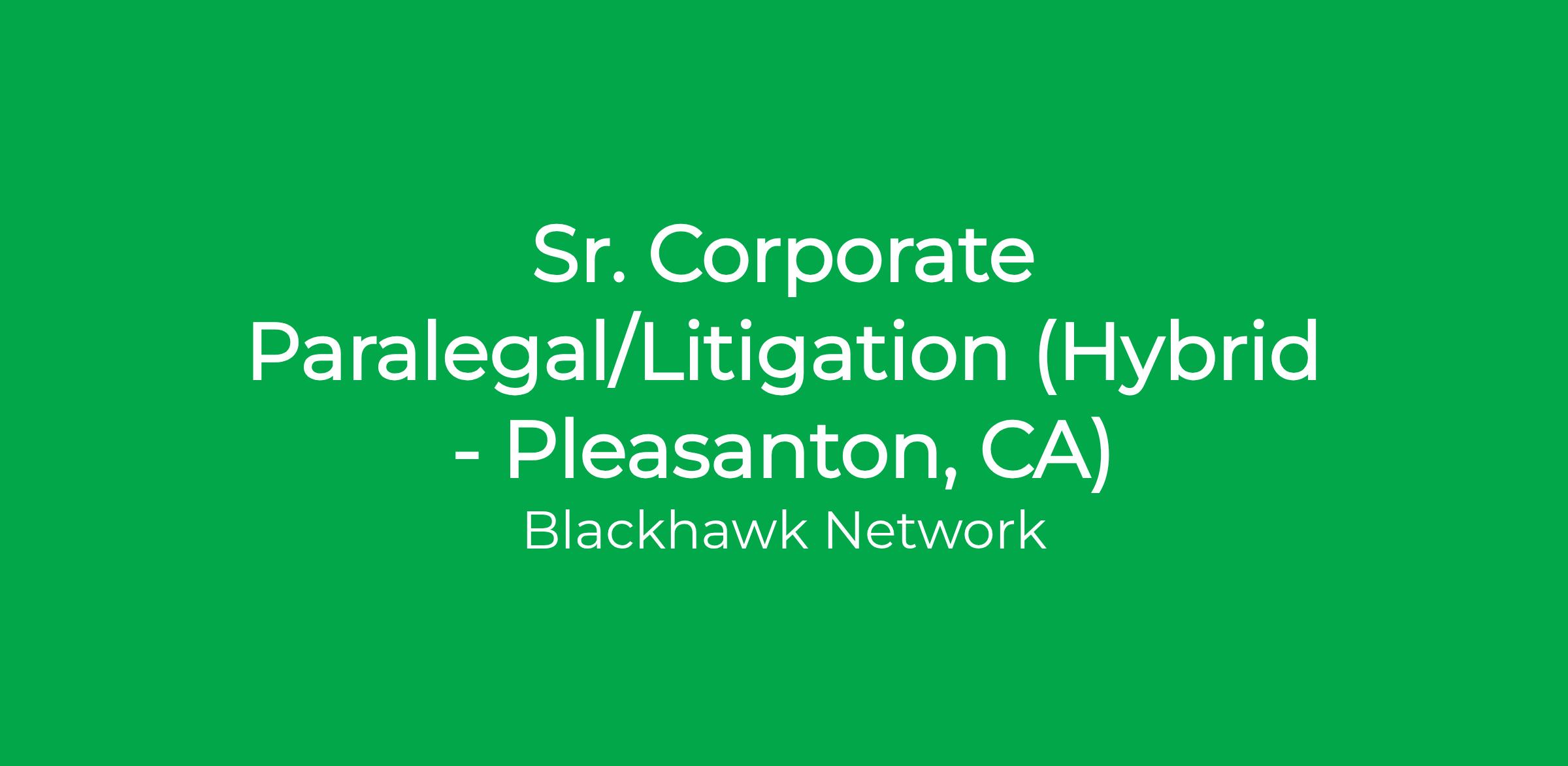 Blackhawk Network’s global legal department has a hybrid opening for a Sr. Corporate Paralegal/Litigation in its Pleasanton, California office. This position provides support to the legal group primarily in the area of litigation, corporate governance, SEC filings, entity maintenance and general corporate matters, and entails frequent interaction with our Board of Directors, senior executives, as well as senior executives of our foreign subsidiaries.