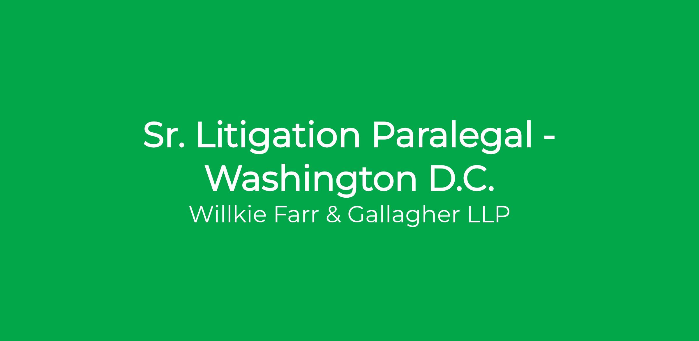 Willkie Farr & Gallagher LLP is seeking a Senior Litigation Paralegal based in the Washington, D.C. office. Willkie is an elite international law firm of approximately 1,300 lawyers located in 16 offices in six countries.