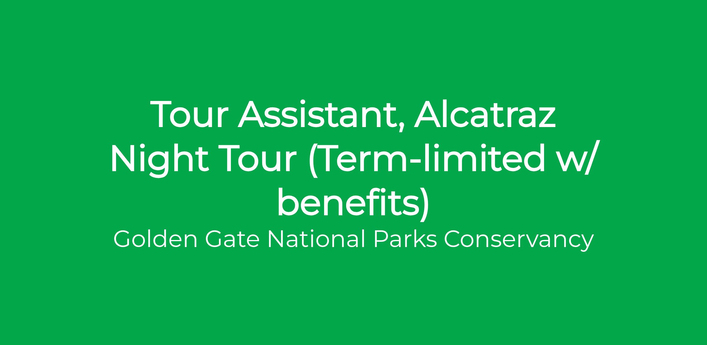 The Golden Gate National Parks Conservancy is seeking a Tour Assistant for the Alcatraz Night Tour and Alcatraz Behind the Scenes tour for a project-term limited position from mid-February 2026 through early November 2026.