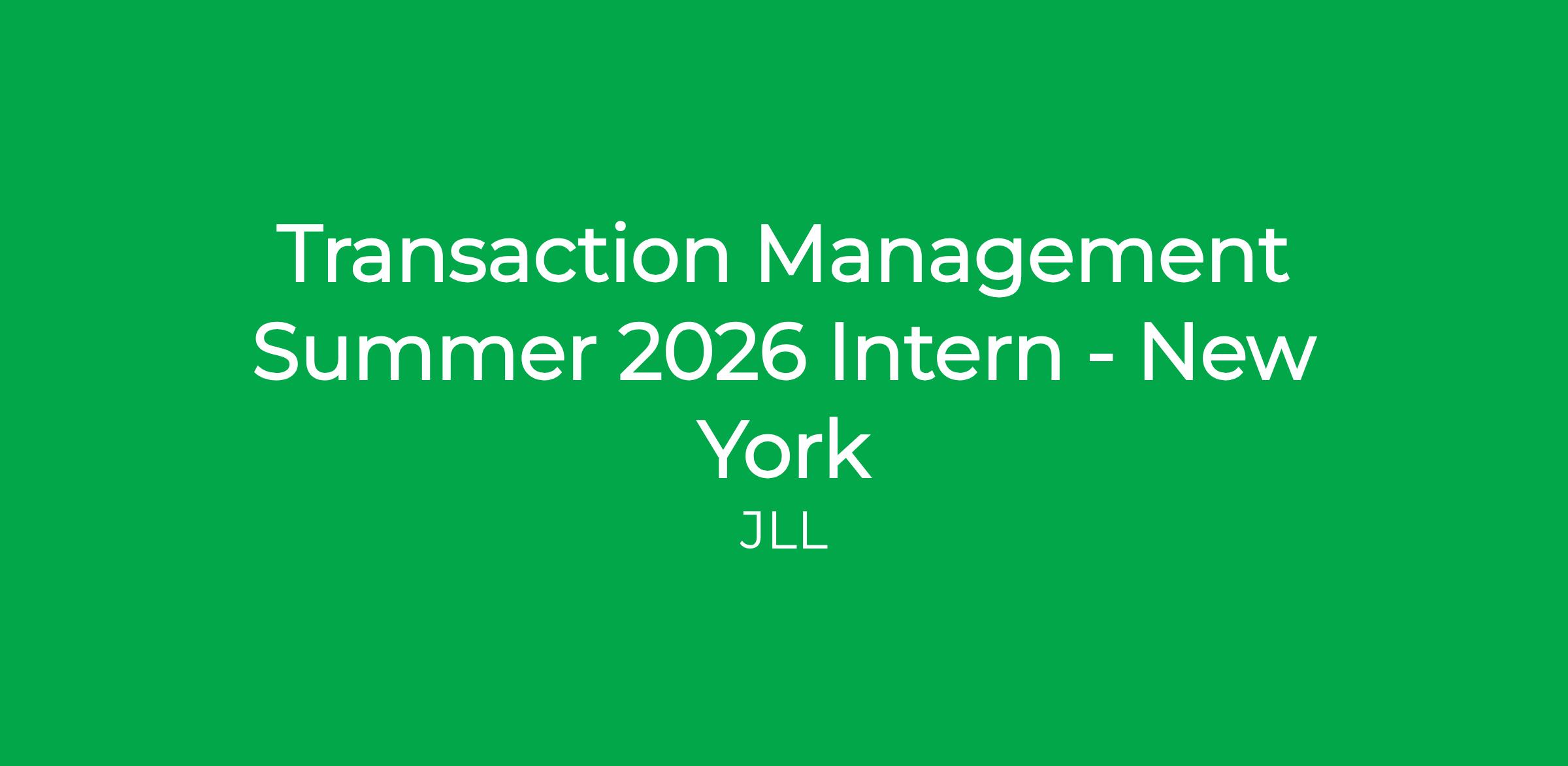 As a Summer Intern in Transaction Management at JLL, you will: