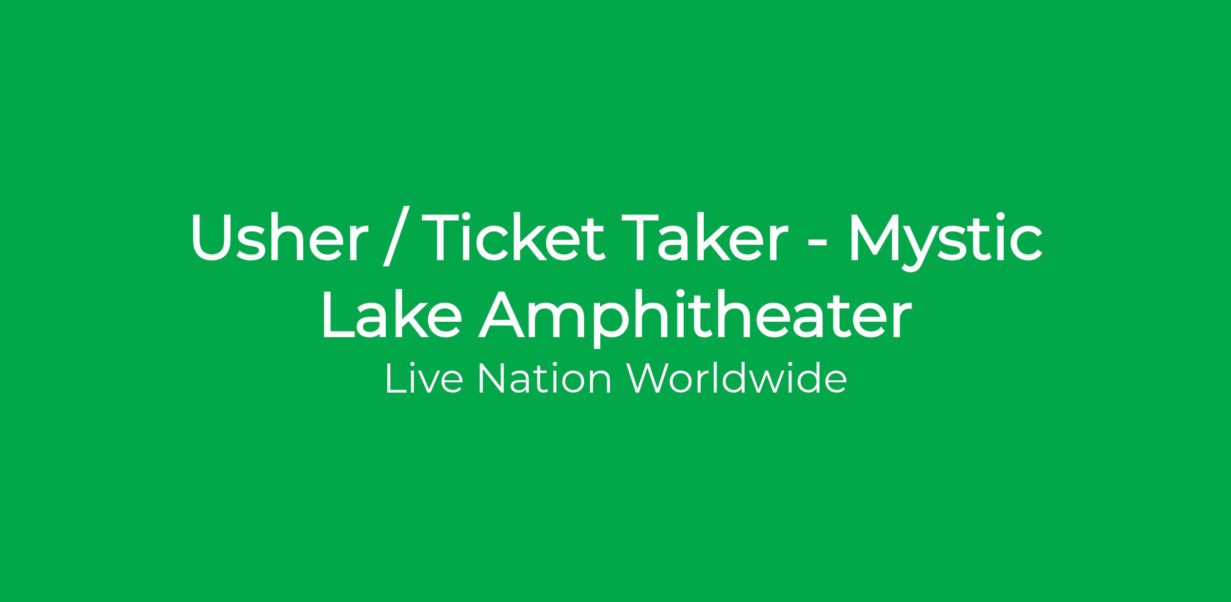 Venue Nation is seeking an Usher/Greeter/Ticket Taker at Mystic Lake Amphitheater. As an usher, greeter or ticket taker, you help to ensure safety, help to maintain the cleanliness of the venue and engage with guests to assist with their needs before, during and after the show.