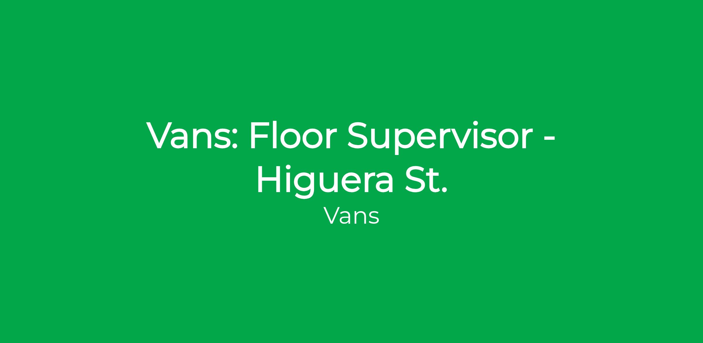 As a passionate, fun and dedicated Floor Supervisor, you are an important part of the store leadership team, ensuring the highest level of customer engagement through sales results and supervising the store team. You foster a positive and inclusive work environment and provide sales-related feedback and coaching associate performance daily. You assist in coaching and supervision of the store team, while emulating a best-in-class customer experience. If you aspire to a career in retail and are looking for a company dedicated to your personal development to continue your growth into a leader of tomorrow, then Vans is for you.
