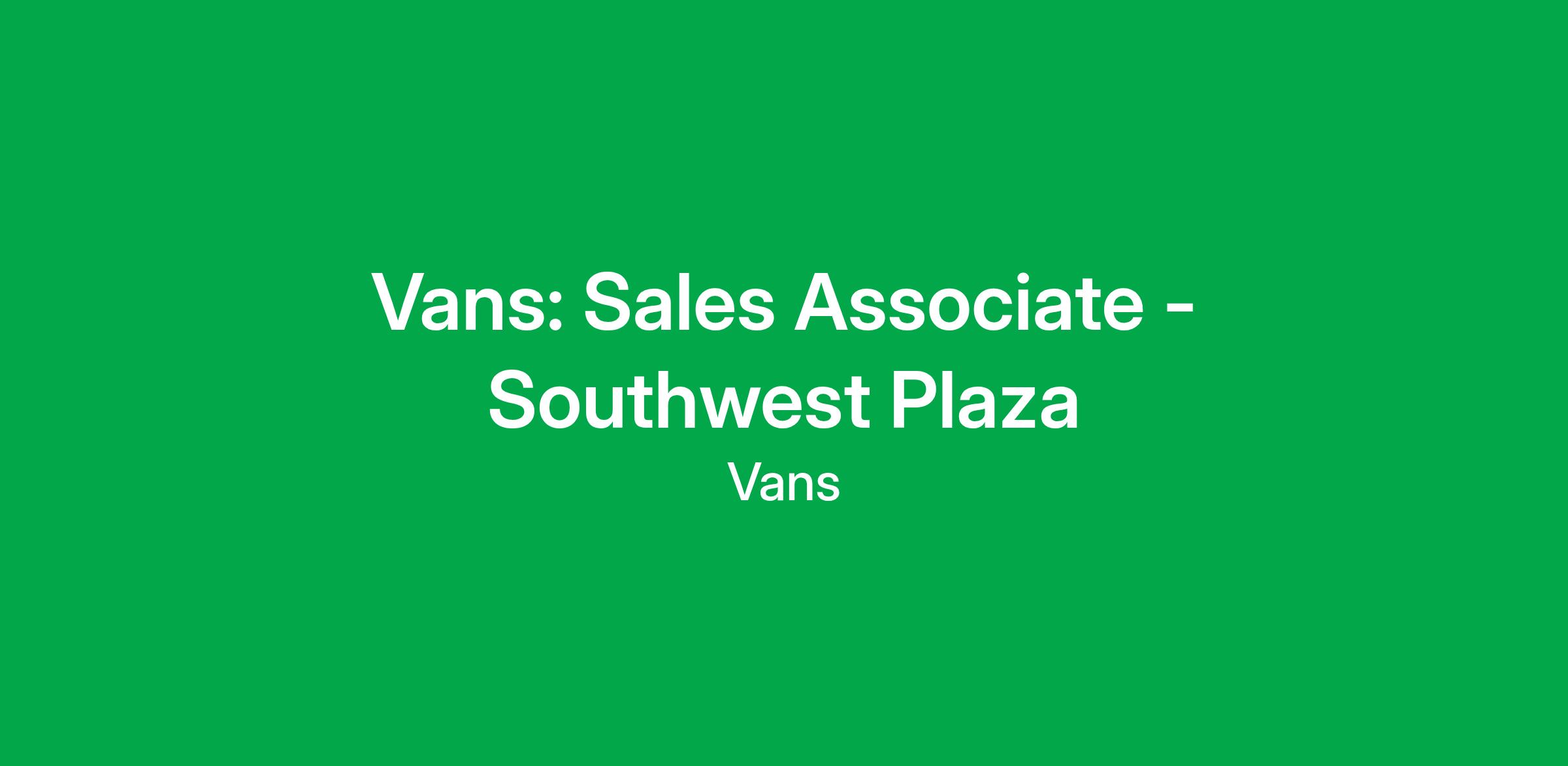 As one of our passionate, fun and dedicated Sales Associates, you will be the voice of our brand while elevating the consumer experience through genuine consumer connections and selling our original/innovative products. As an invaluable part of our team, you will thrive in an environment where individuality and authenticity are celebrated. If you aspire to a career in retail and are looking for a company dedicated to your personal growth to evolve into a leader of tomorrow, then Vans is for you.