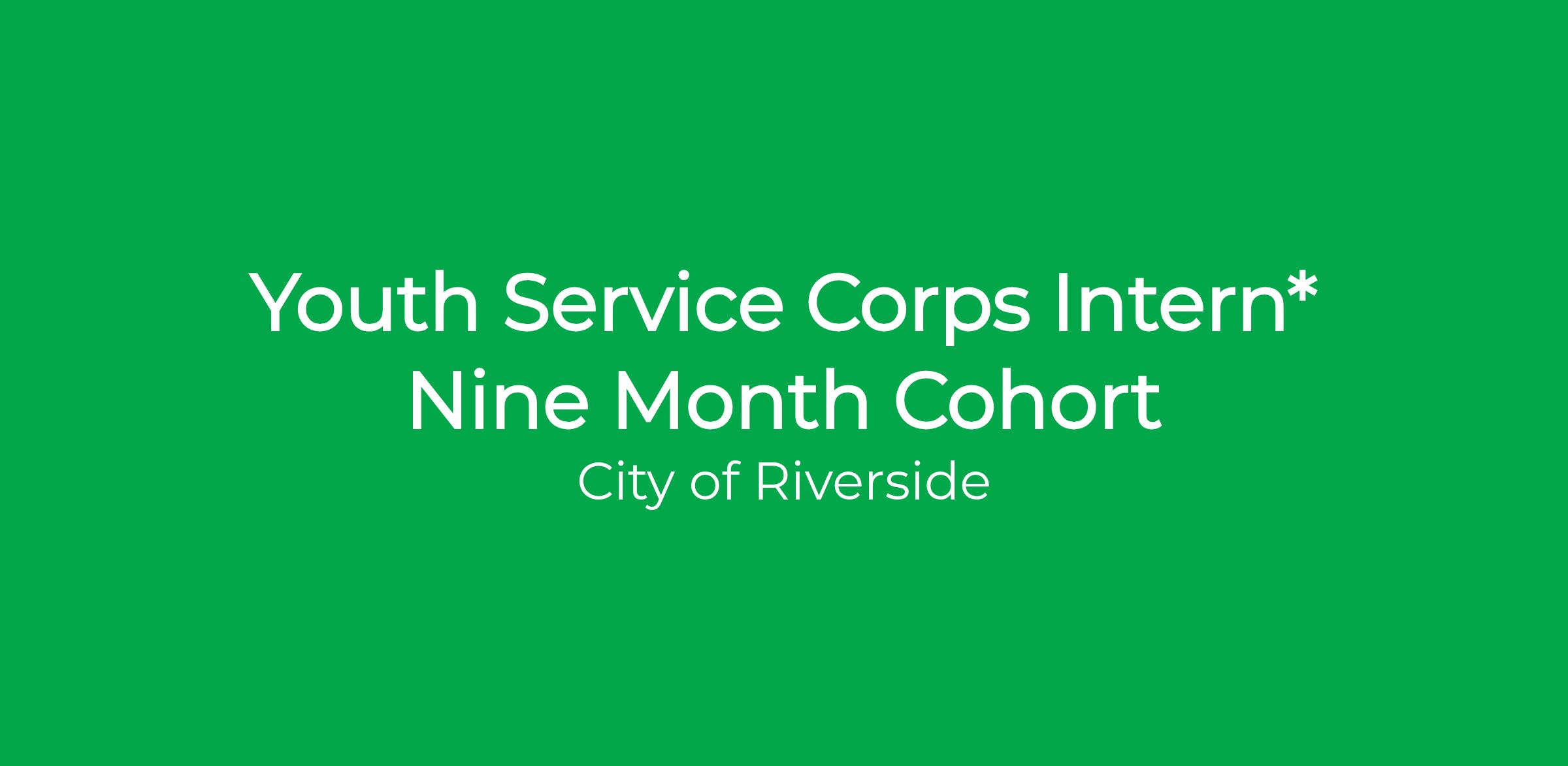 The City of Riverside is accepting applications for the position of Youth Service Corps Intern to establish an eligibility list that may be used to fill current and/or upcoming vacancies within this classification for up to six (6) months, but may be extended.